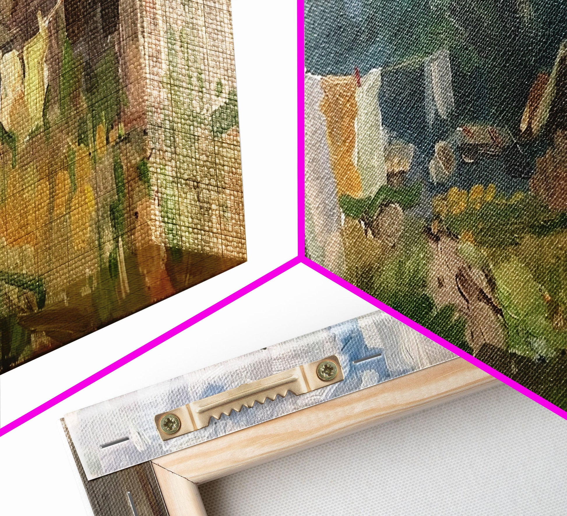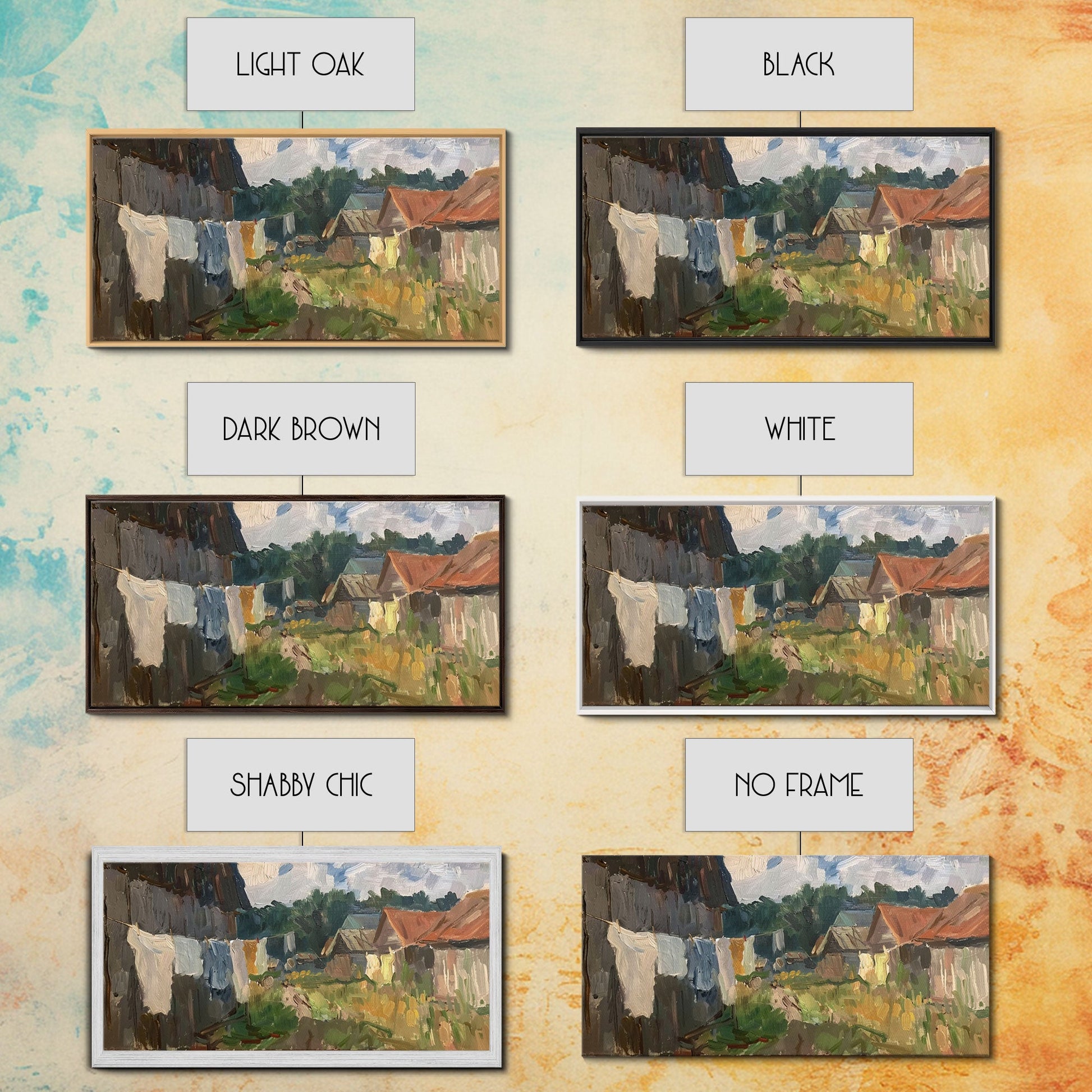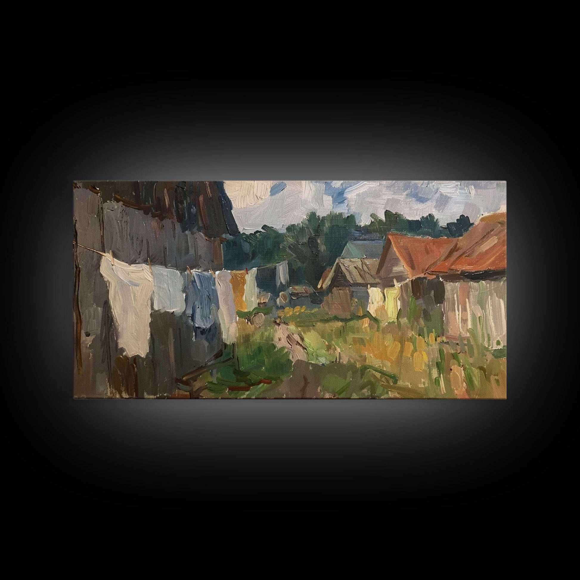 Rustic Farmyard with Laundry, Framed Canvas Print, Farmhouse Wall Art, Living Room Decor, Country Style, Outdoor Scene