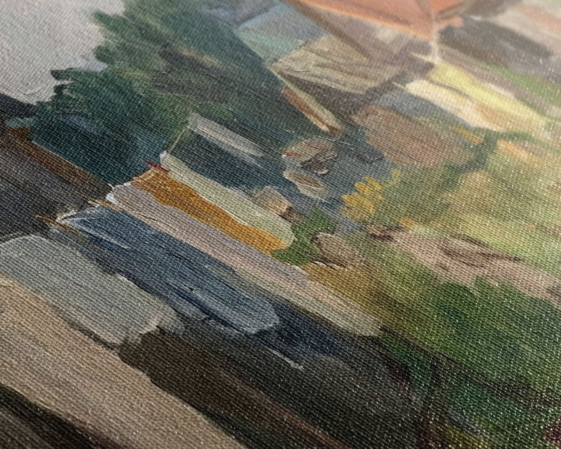 Most of our canvases are made in the USA, with the exception of canvases ordered with the light oak unstained frames, and any large canvases (24x48, 30x60, 16x48 and 20x60) ordered WITH a frame. These are temporarily made in and shipped from Europe, while we try to find a more consistent supplier in the USA.