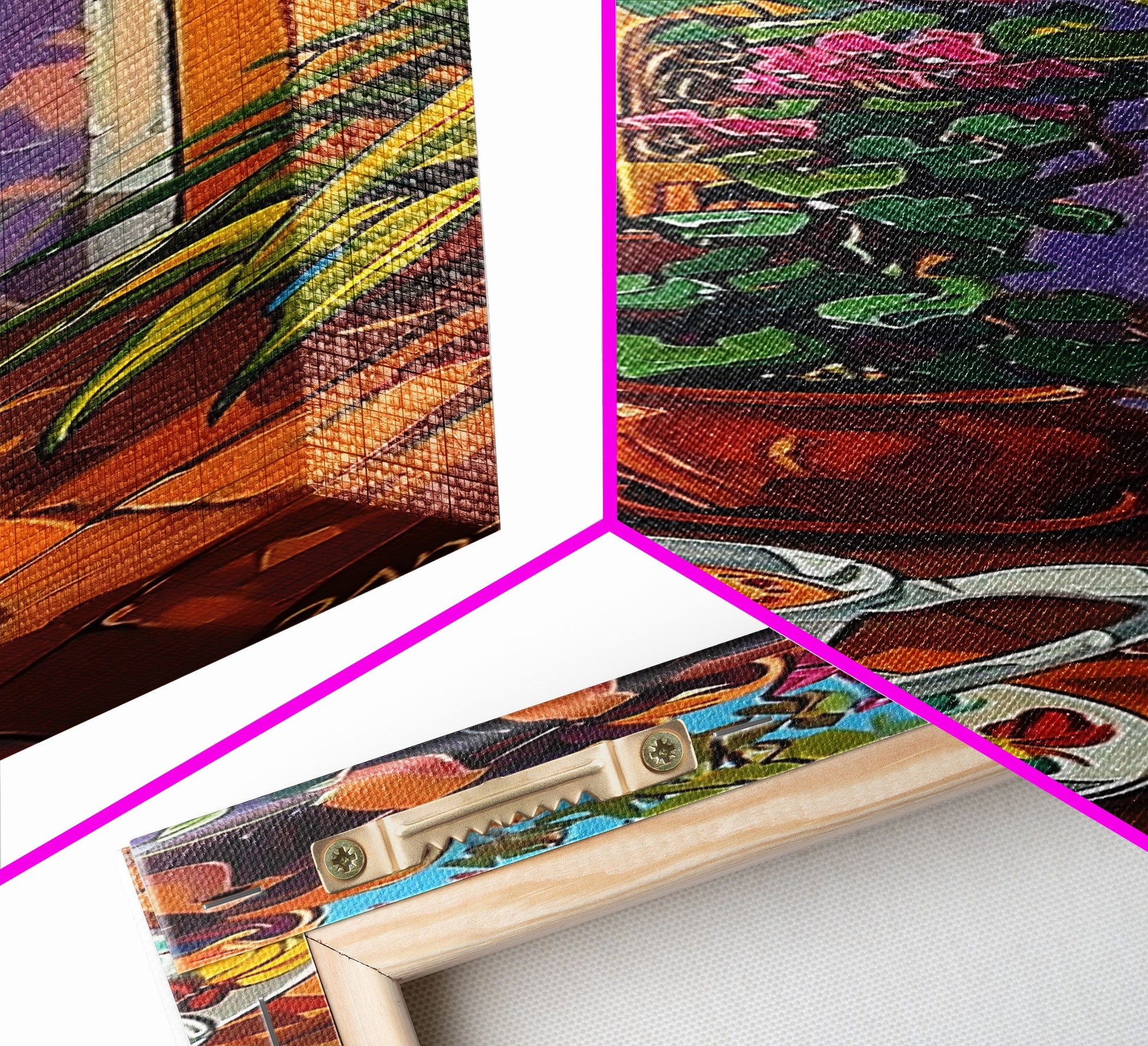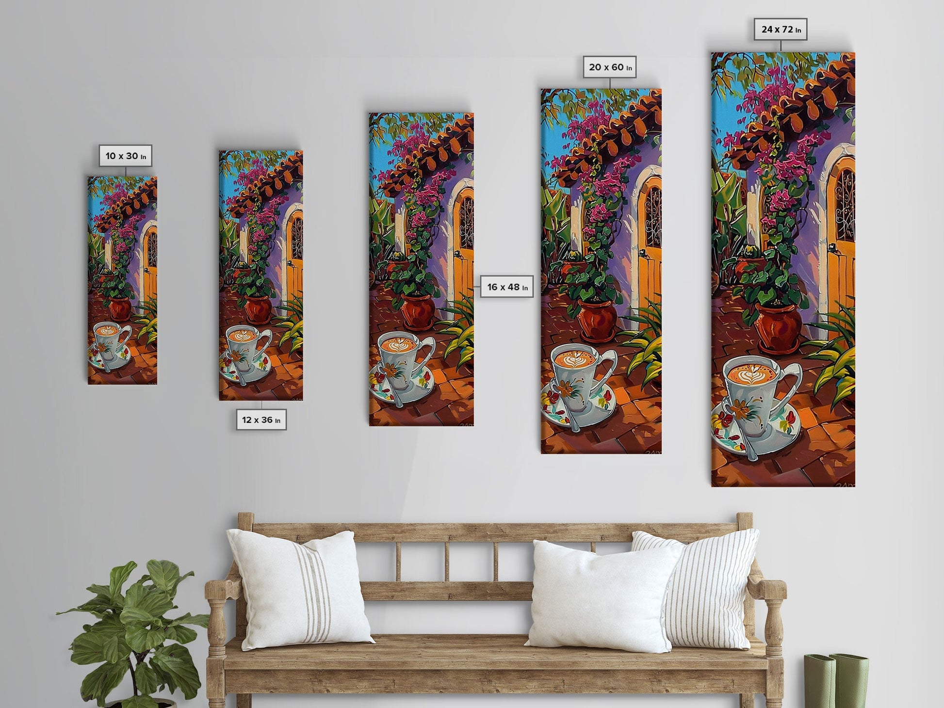 Rustic Garden Oil Painting Framed and Printed on Canvas, Tall Narrow Triptych Art Print, Coastal Art, Coffee Art, Contemporary Art Print