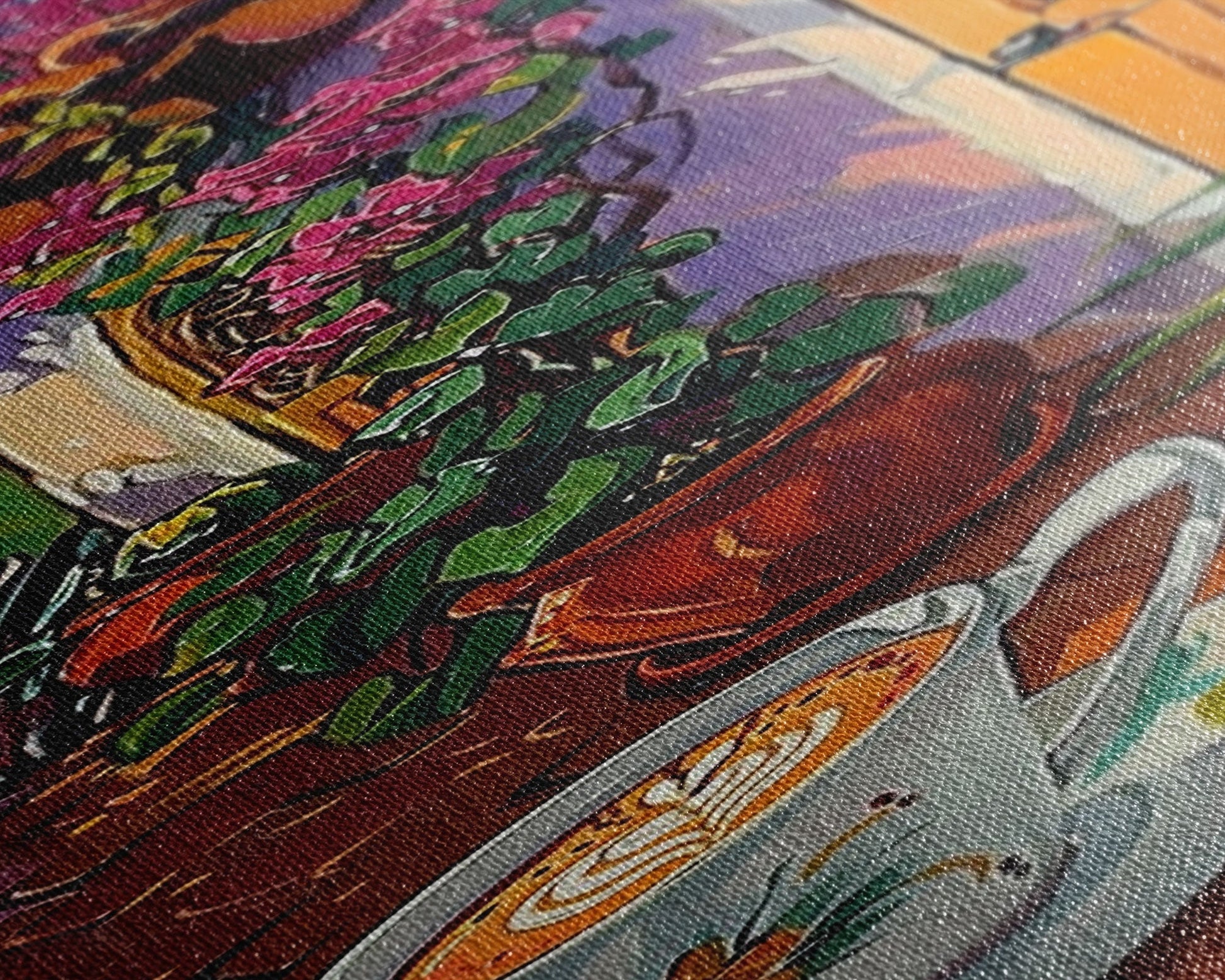 Most of our canvases are made in the USA, with the exception of canvases ordered with the light oak unstained frames, and any large canvases (24x48, 30x60, 16x48 and 20x60) ordered WITH a frame. These are temporarily made in and shipped from Europe, while we try to find a more consistent supplier in the USA.