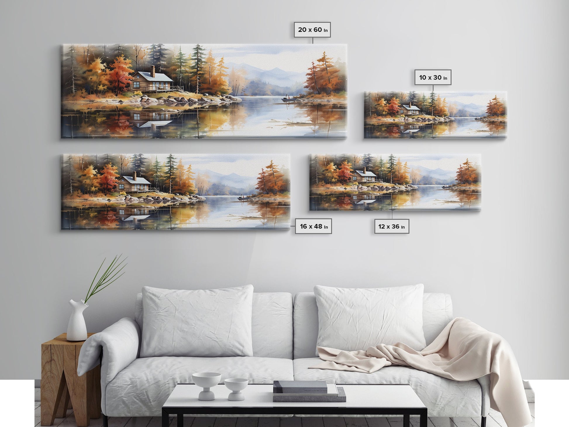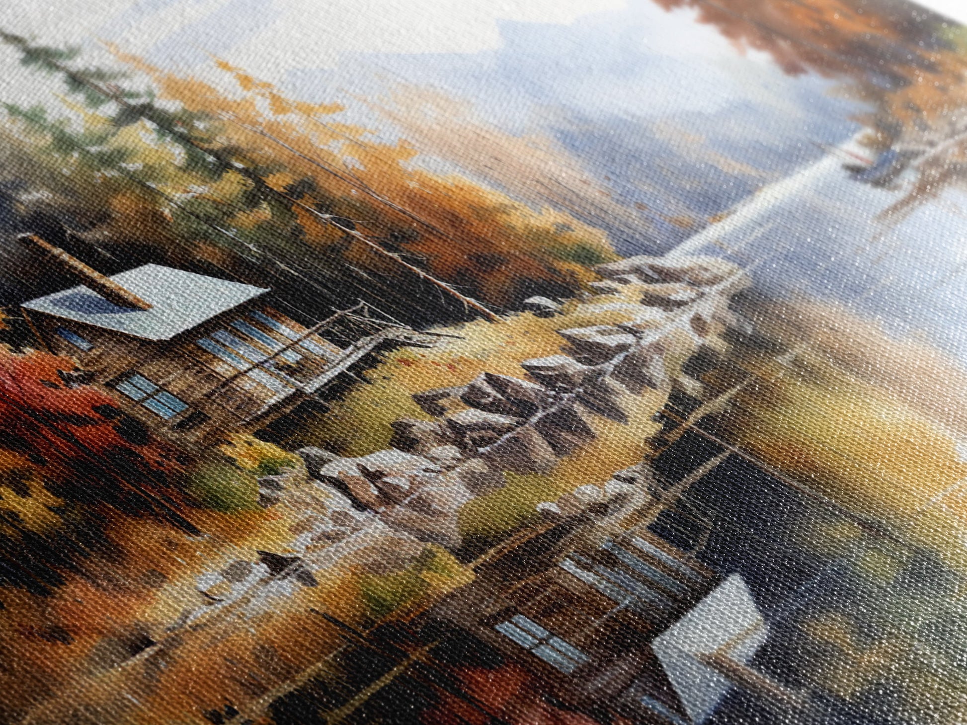 Rustic Lake Cabin at Dusk Watercolor Painting | Peaceful Wilderness Landscape Canvas Print | Modern Country Decor and Nature Lovers