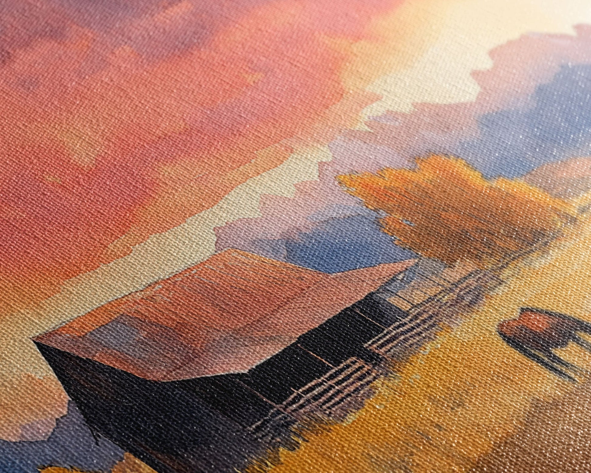 Rustic Mountain Barn Sunset Canvas Print | Autumn Farmhouse Wall Art | Fall Home Decor | Holiday Art Gift | Framed Canvas Print Wall Decor