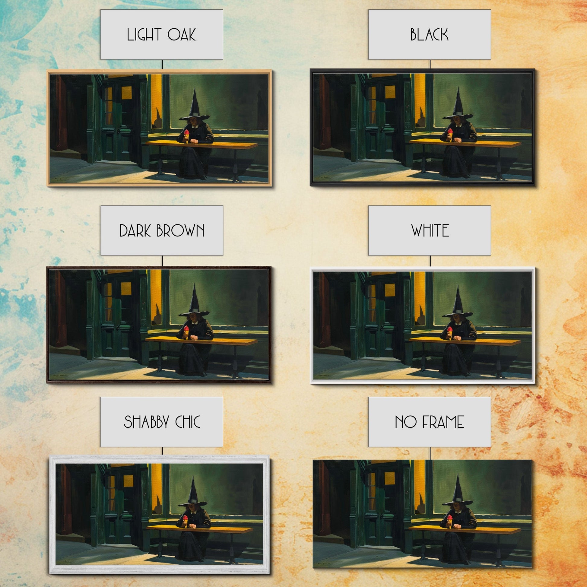 Sad Witch Having an Ice Cream Cone, Funny Halloween Art, Framed Canvas Print, Liminal Art