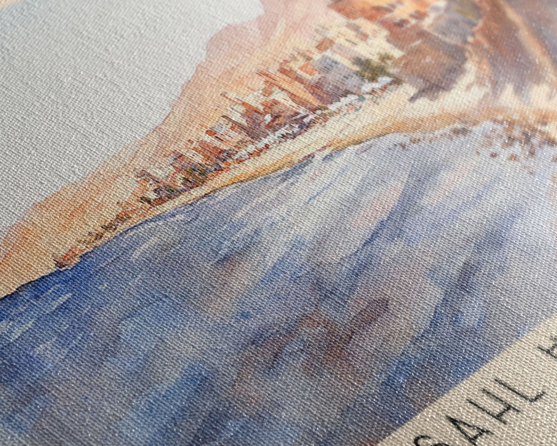 Most of our canvases are made in the USA, with the exception of canvases ordered with the light oak unstained frames, and any large canvases (24x48, 30x60, 16x48 and 20x60) ordered WITH a frame. These are temporarily made in and shipped from Europe, while we try to find a more consistent supplier in the USA.