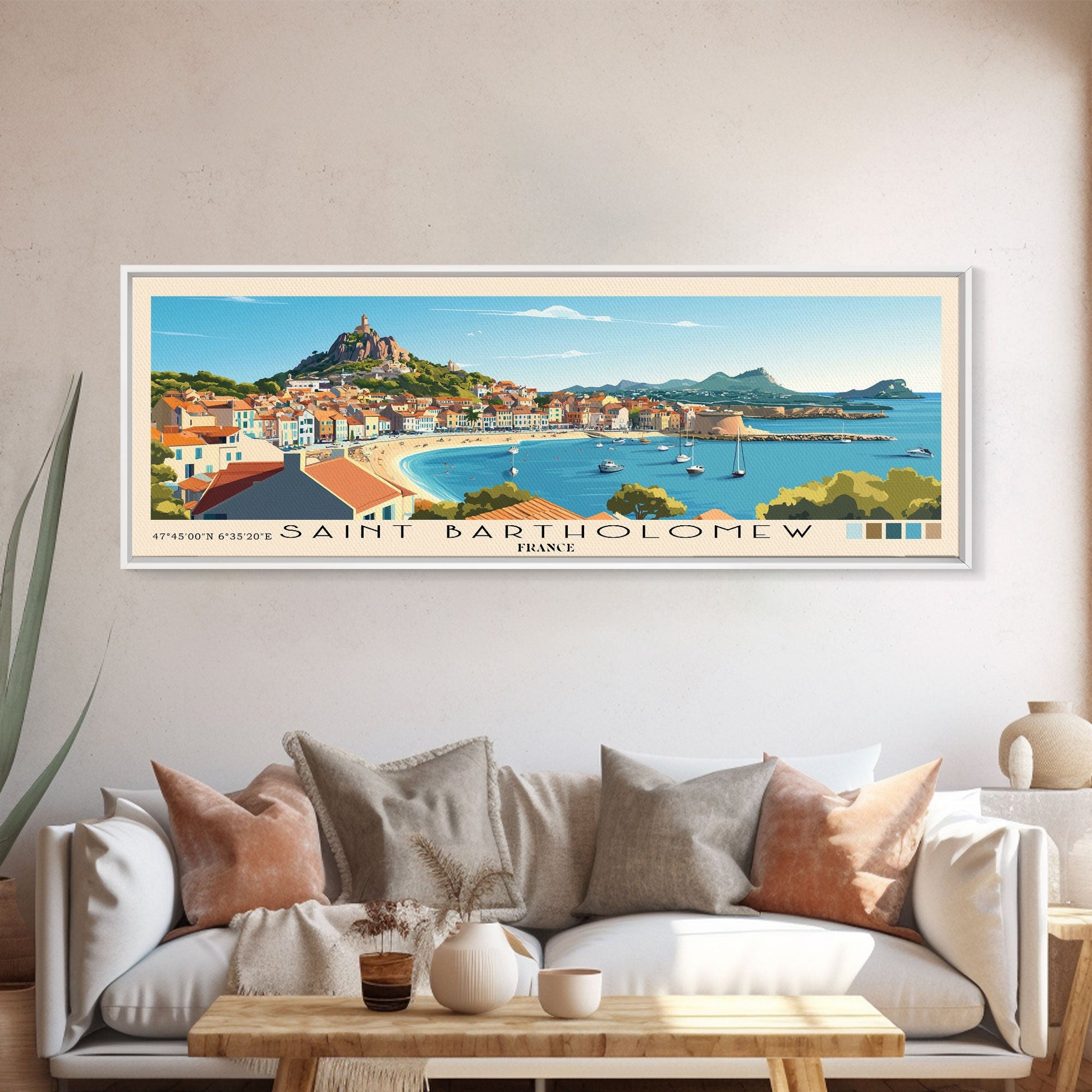 Saint Bartholomew, France Panoramic Beach Print, Vacation Gift, France Wall Art, Framed Canvas Print, Framed Beach Painting