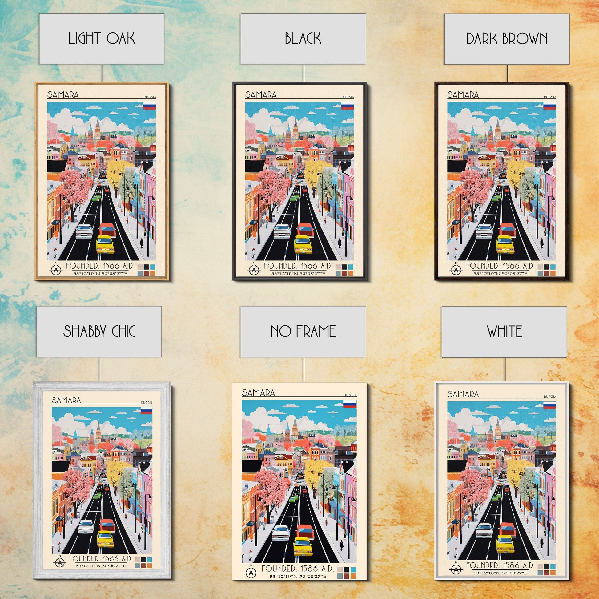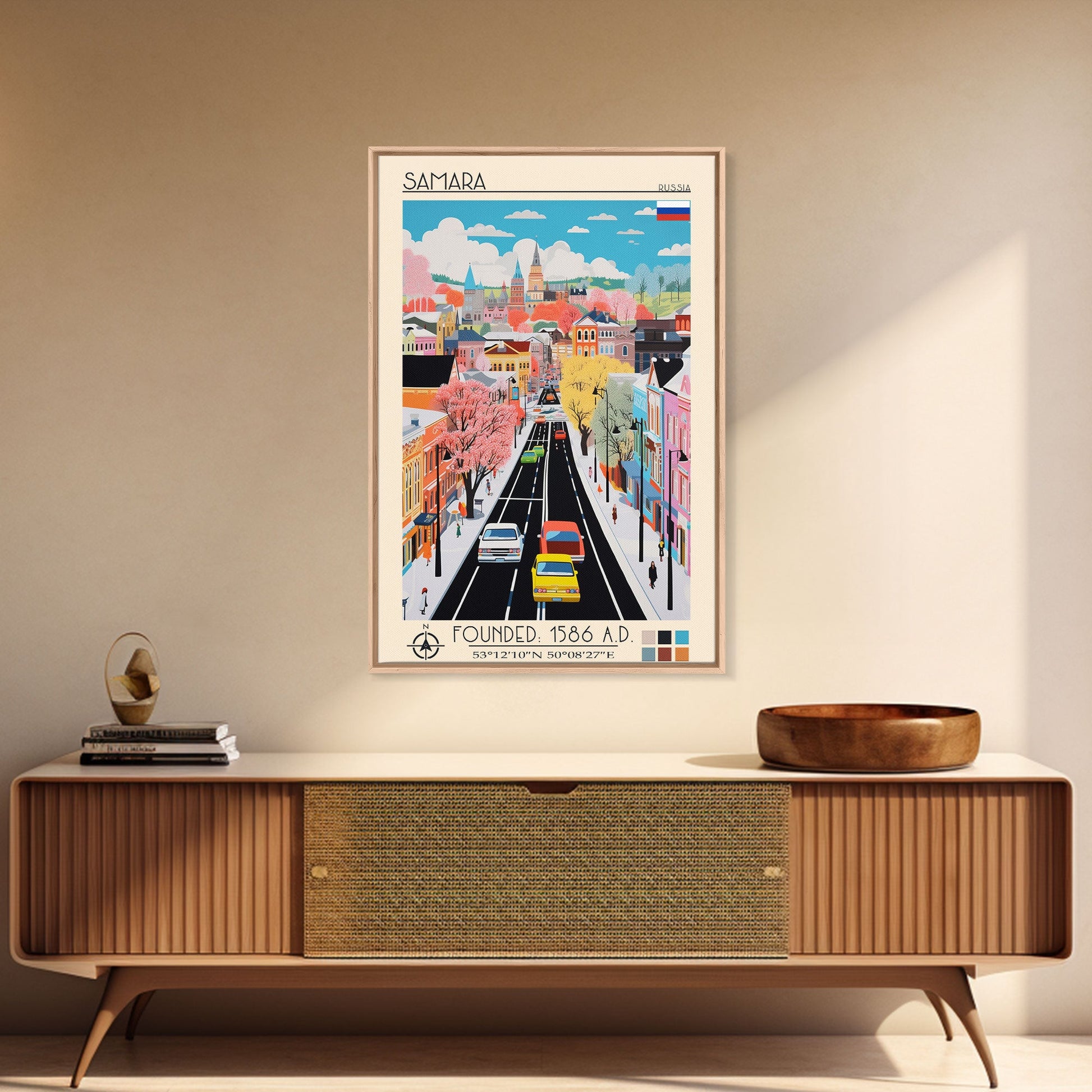Samara Russia Travel Poster Framed Canvas Print, Midcentury Modern Art, Pop Art Wall Decor, Home Decor, Office Decoration, Scenic Art