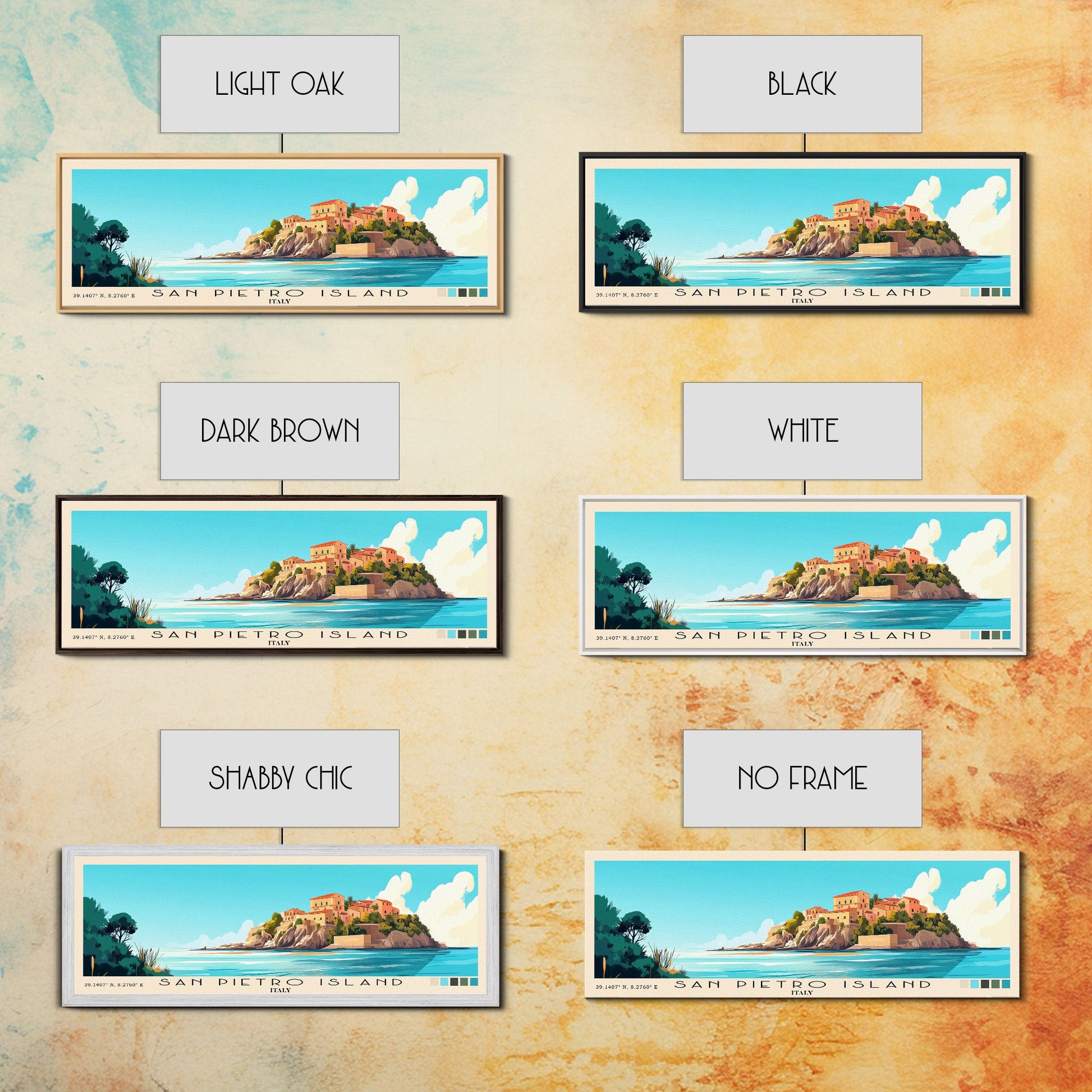 San Pietro Island, Italy Panoramic Print, Vacation Gift, Italy Wall Art, Beach Painting, Beach Decor, Beach Or Lakehouse Art