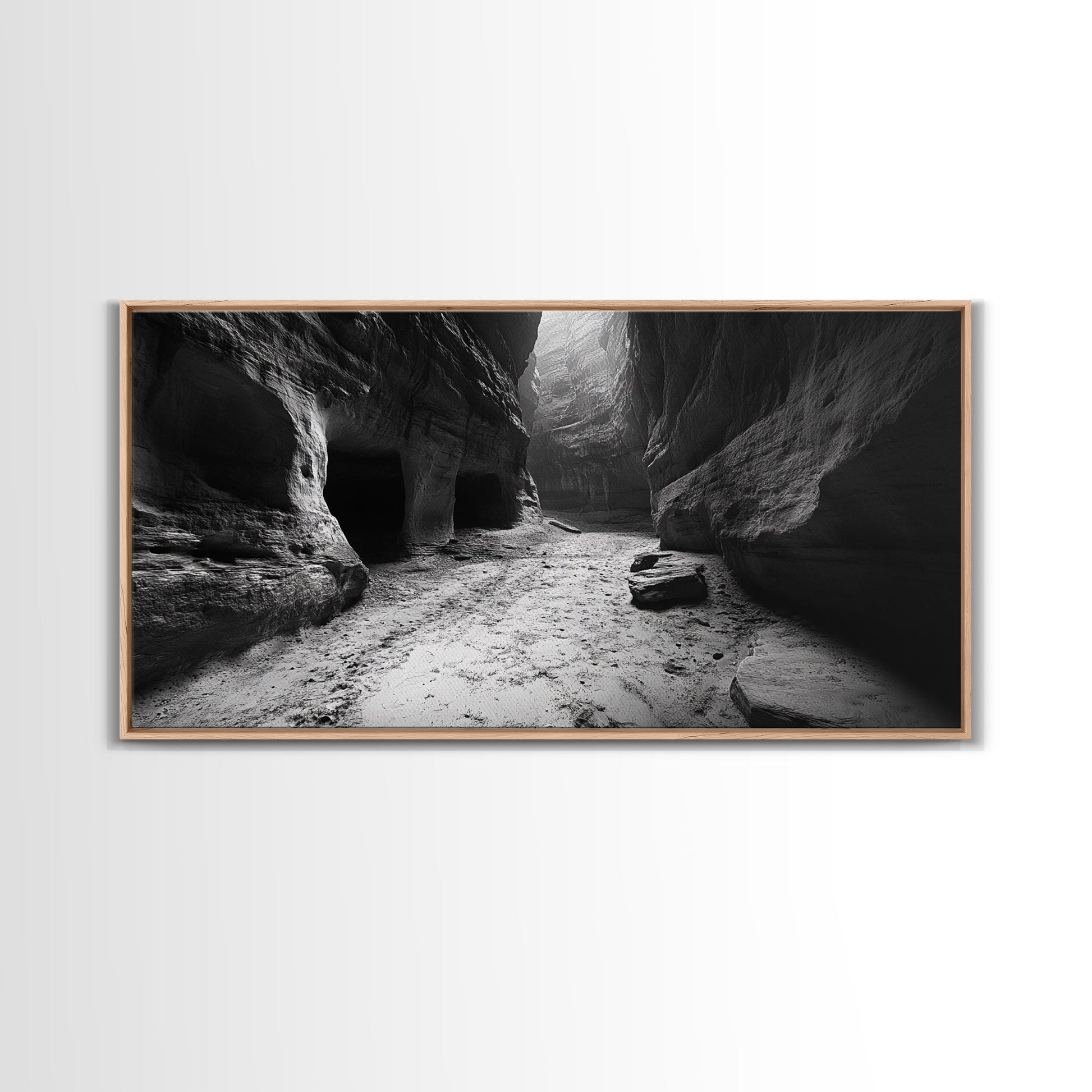 Sandstone Canyon Light, Desert Rock Passage, Dramatic Cliff Scene, Framed Canvas Print, Adventure Art, Hallway or Den Wall Decor