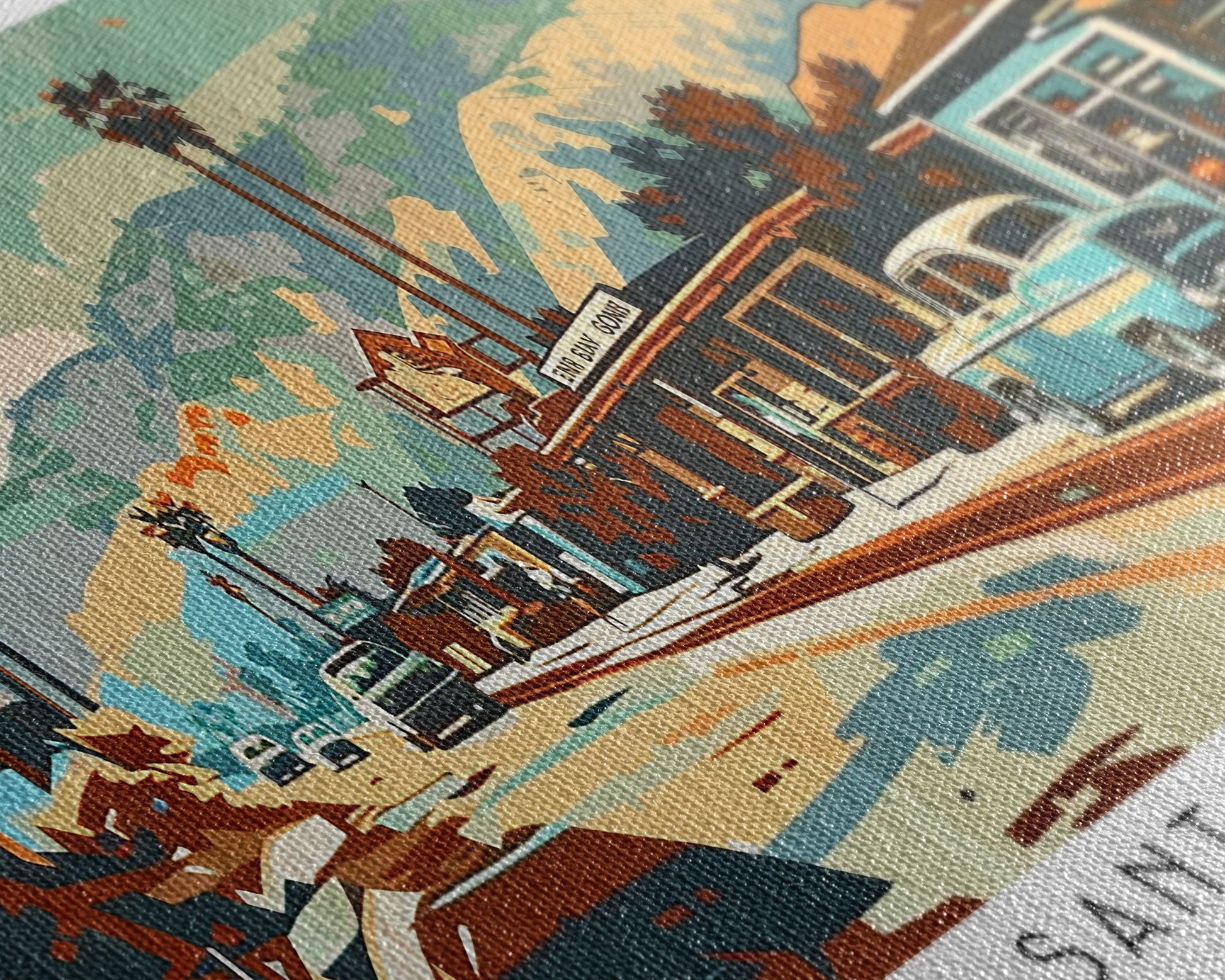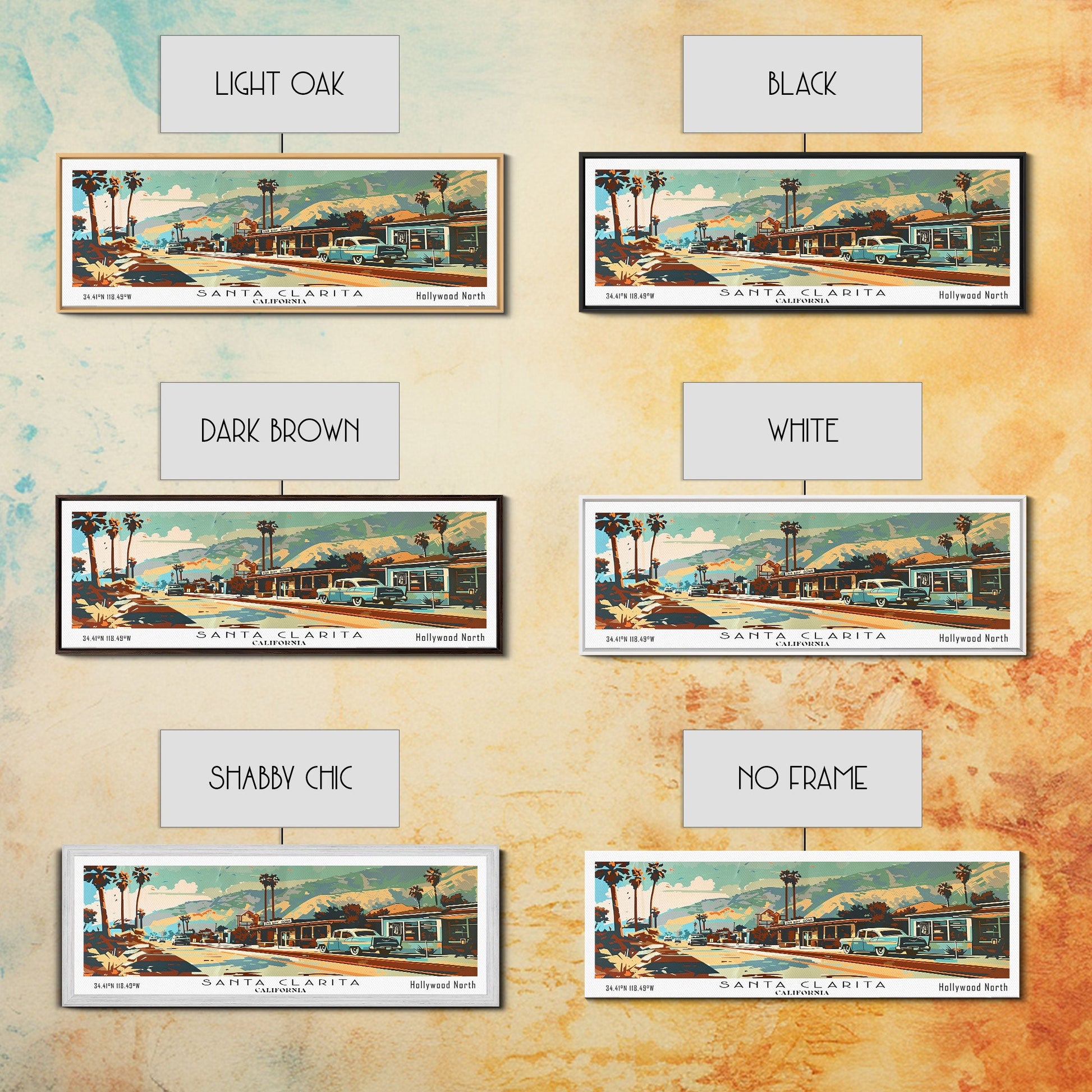 Santa Clarita California Panoramic Wall Art, Mid Century Modern Framed Canvas Print, Retro Pop Art Travel Poster, Living Room and Office Decor