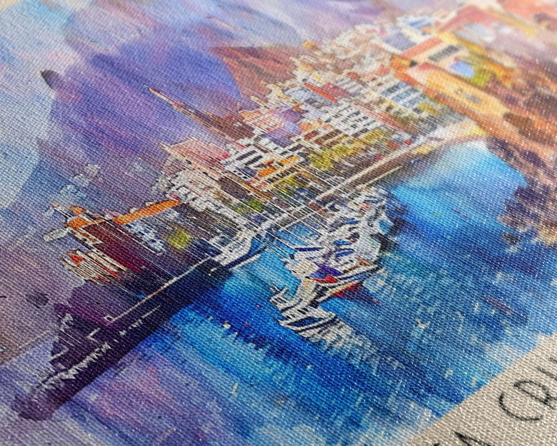 Most of our canvases are made in the USA, with the exception of canvases ordered with the light oak unstained frames, and any large canvases (24x48, 30x60, 16x48 and 20x60) ordered WITH a frame. These are temporarily made in and shipped from Europe, while we try to find a more consistent supplier in the USA.