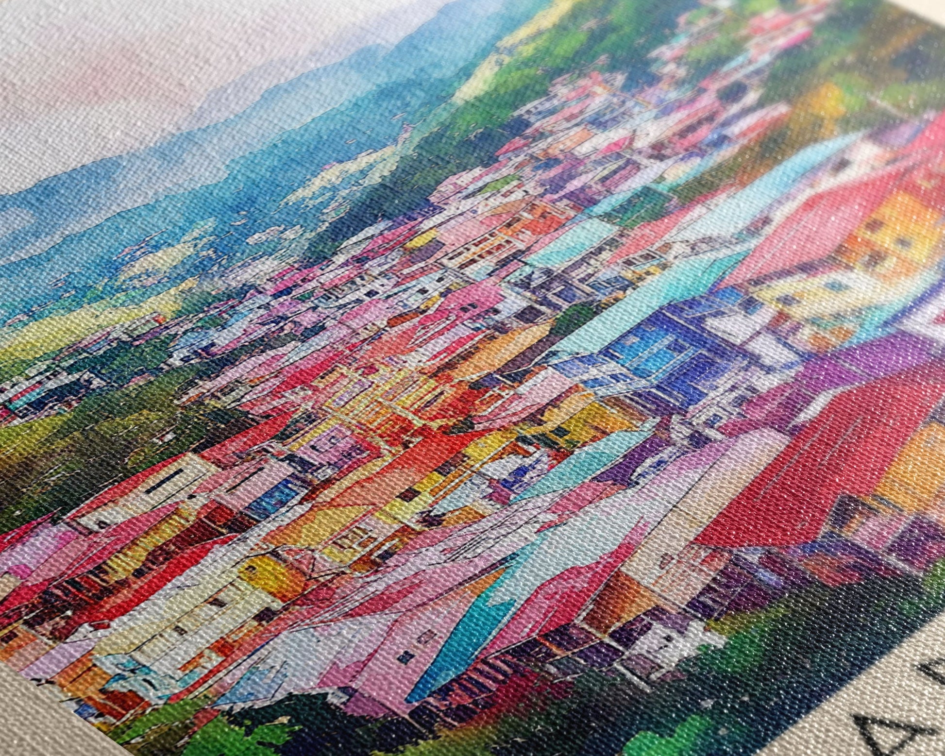 Most of our canvases are made in the USA, with the exception of canvases ordered with the light oak unstained frames, and any large canvases (24x48, 30x60, 16x48 and 20x60) ordered WITH a frame. These are temporarily made in and shipped from Europe, while we try to find a more consistent supplier in the USA.