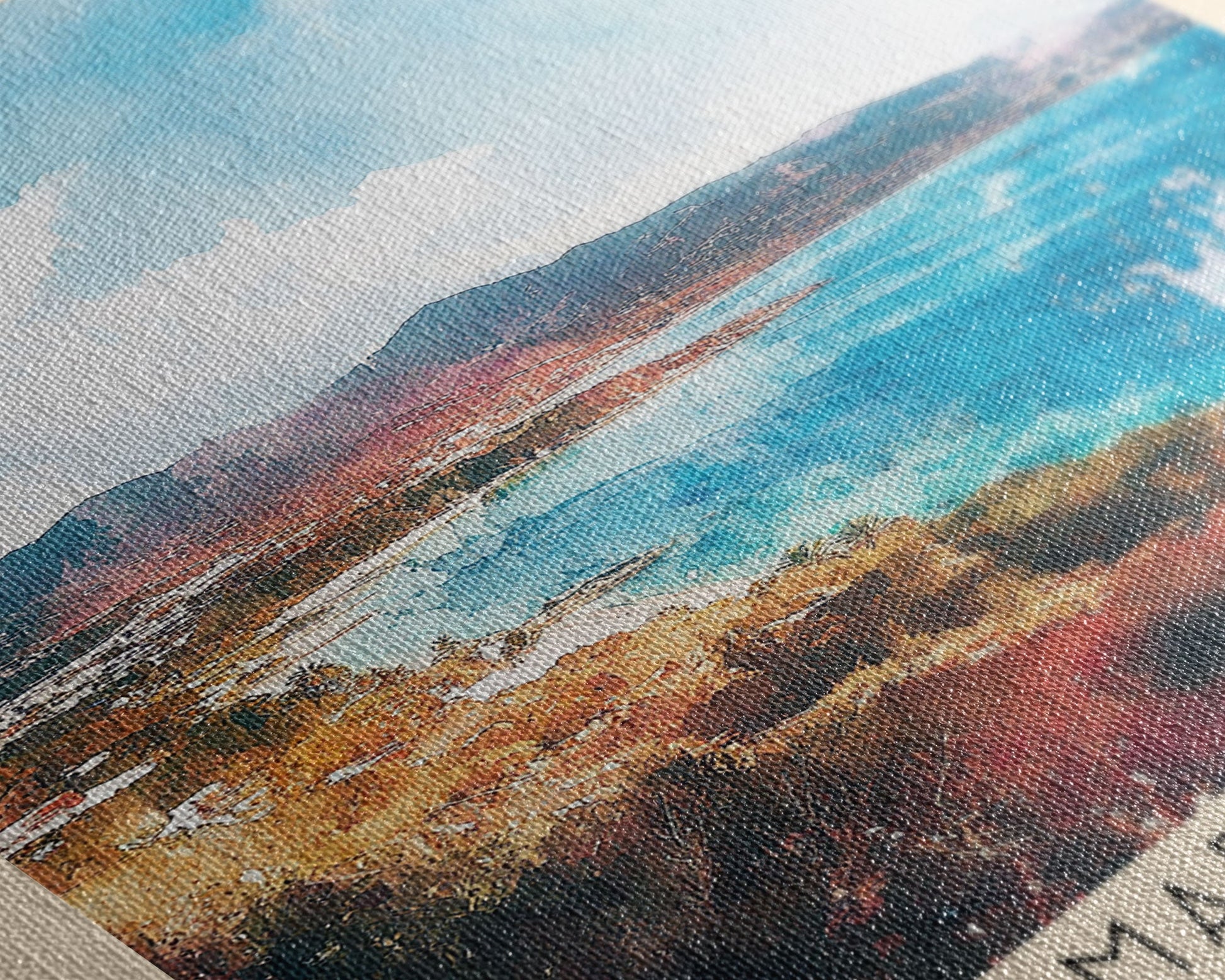 Most of our canvases are made in the USA, with the exception of canvases ordered with the light oak unstained frames, and any large canvases (24x48, 30x60, 16x48 and 20x60) ordered WITH a frame. These are temporarily made in and shipped from Europe, while we try to find a more consistent supplier in the USA.