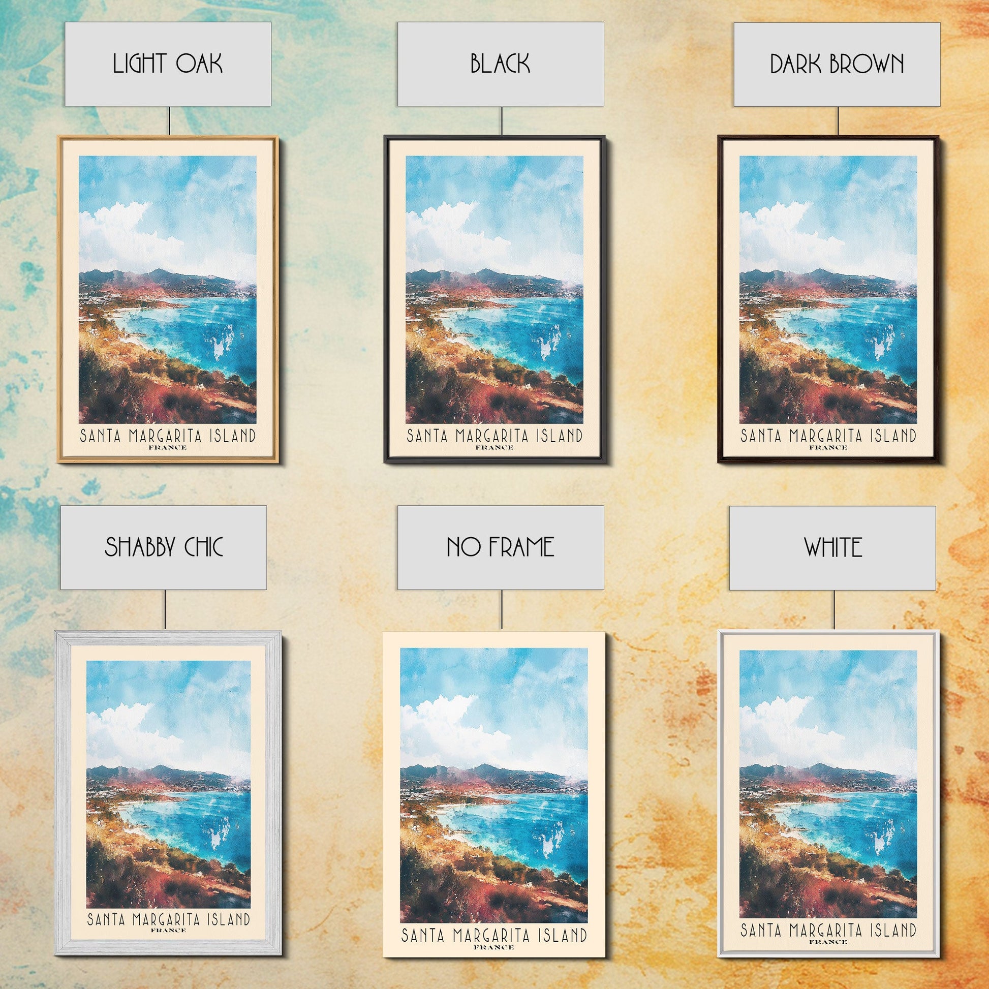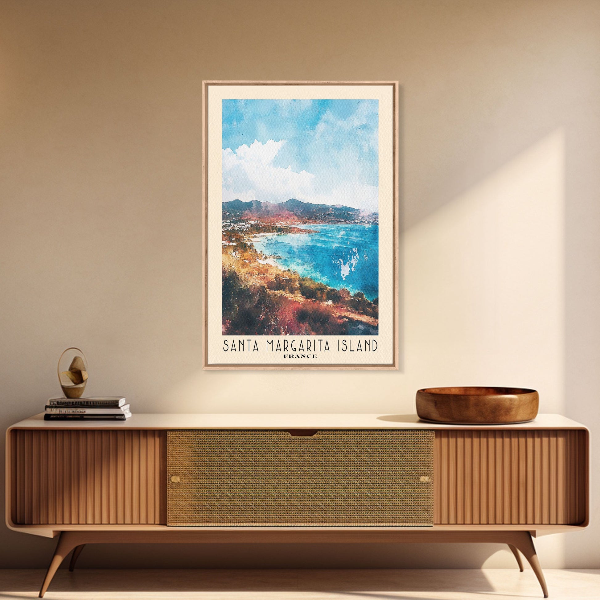 Santa Margarita Island, France Watercolor Print, Vacation Gift, France Wall Art, Beach Painting, Beach Decor, Large Wall Art, Wood Frame Art