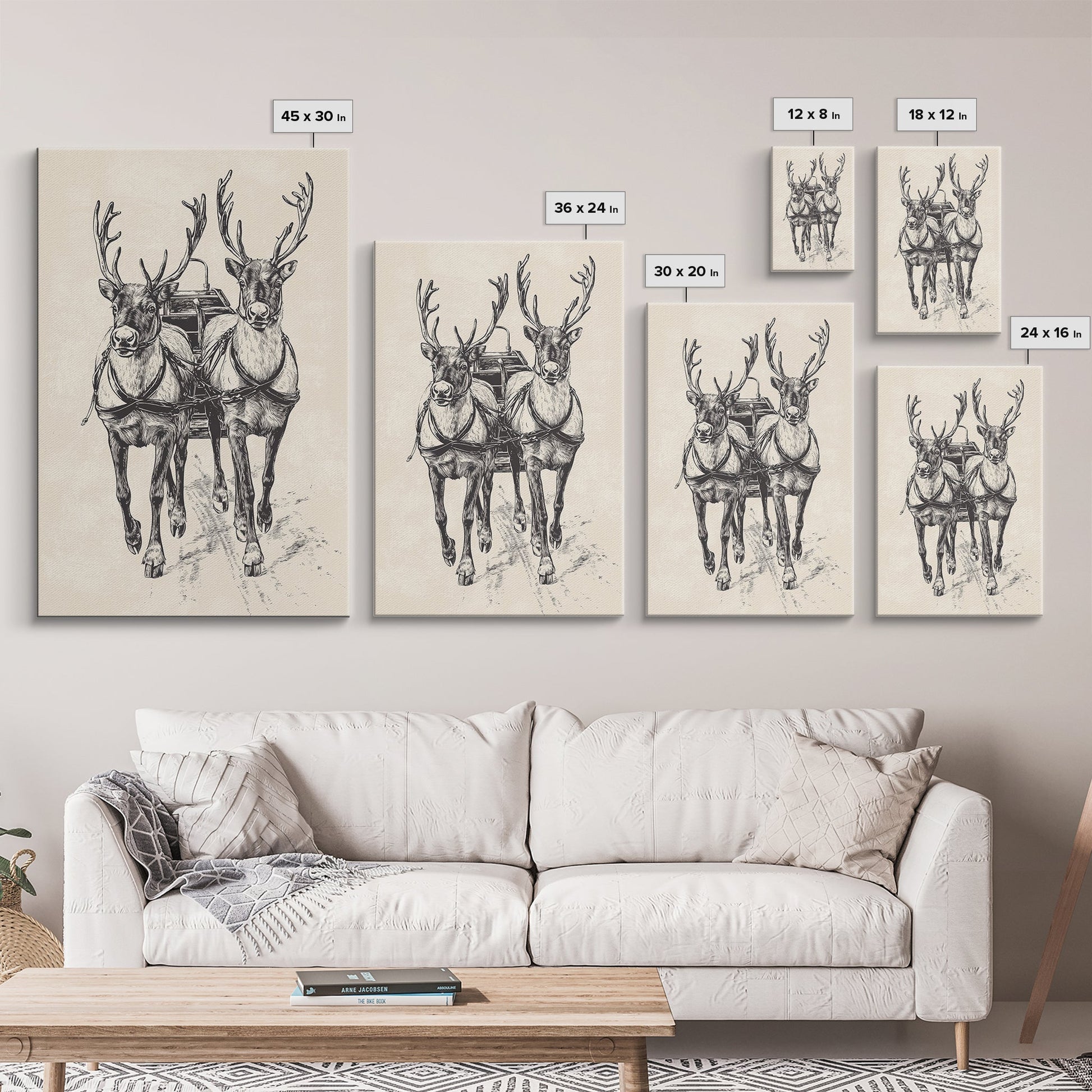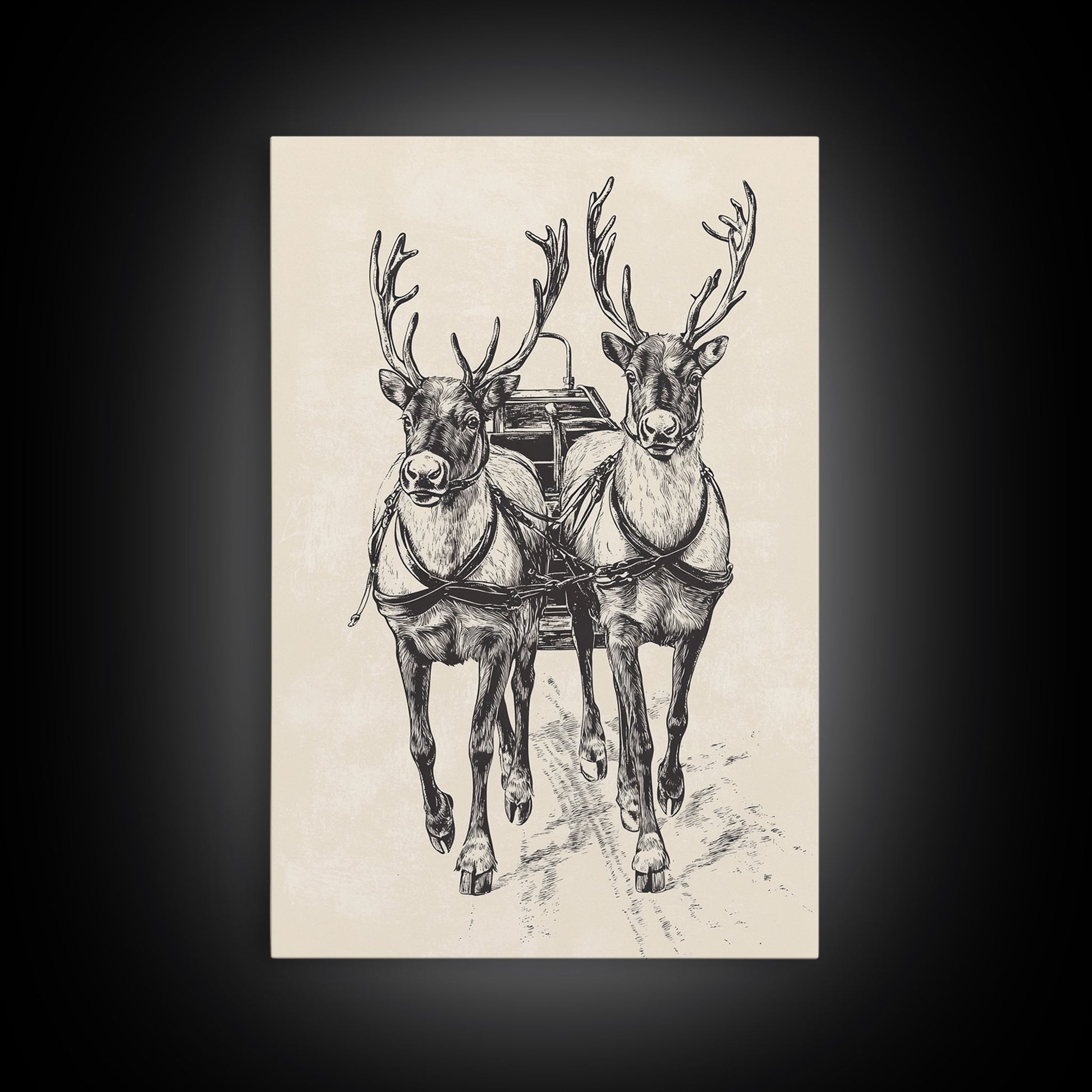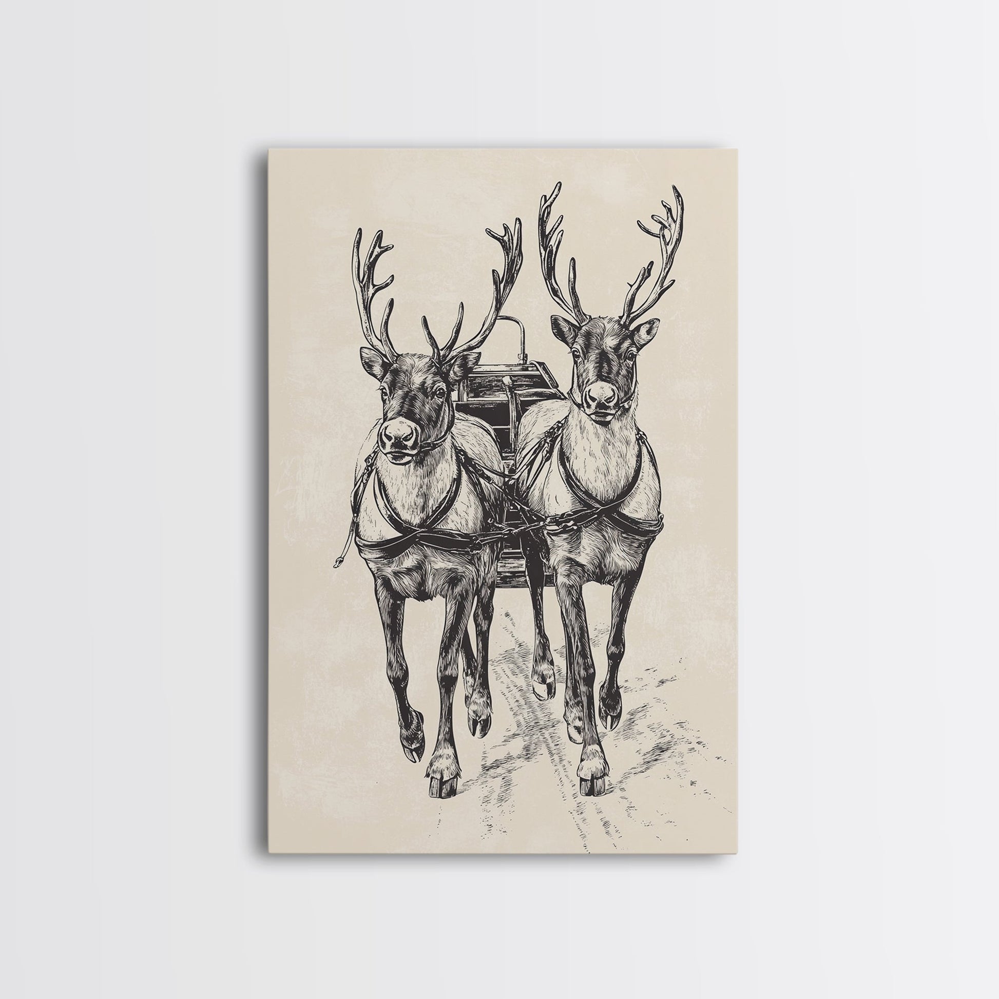 Santa's Sleigh Canvas Print - Framed Canvas - Minimalist Christmas Art - Boho Christmas Art - Rustic Christmas Art