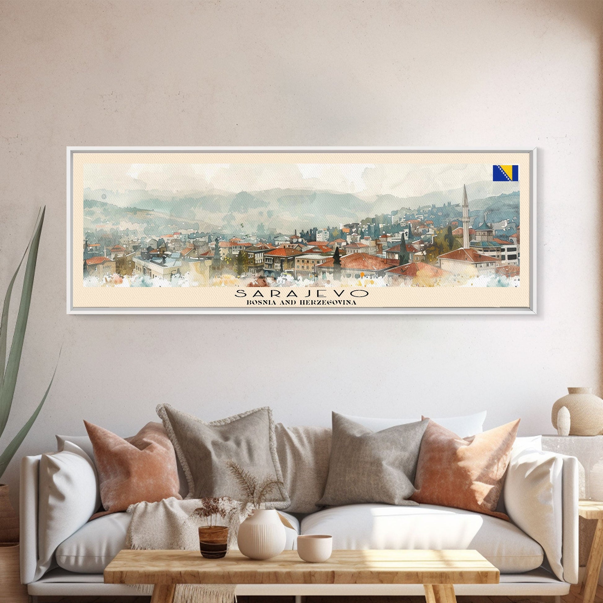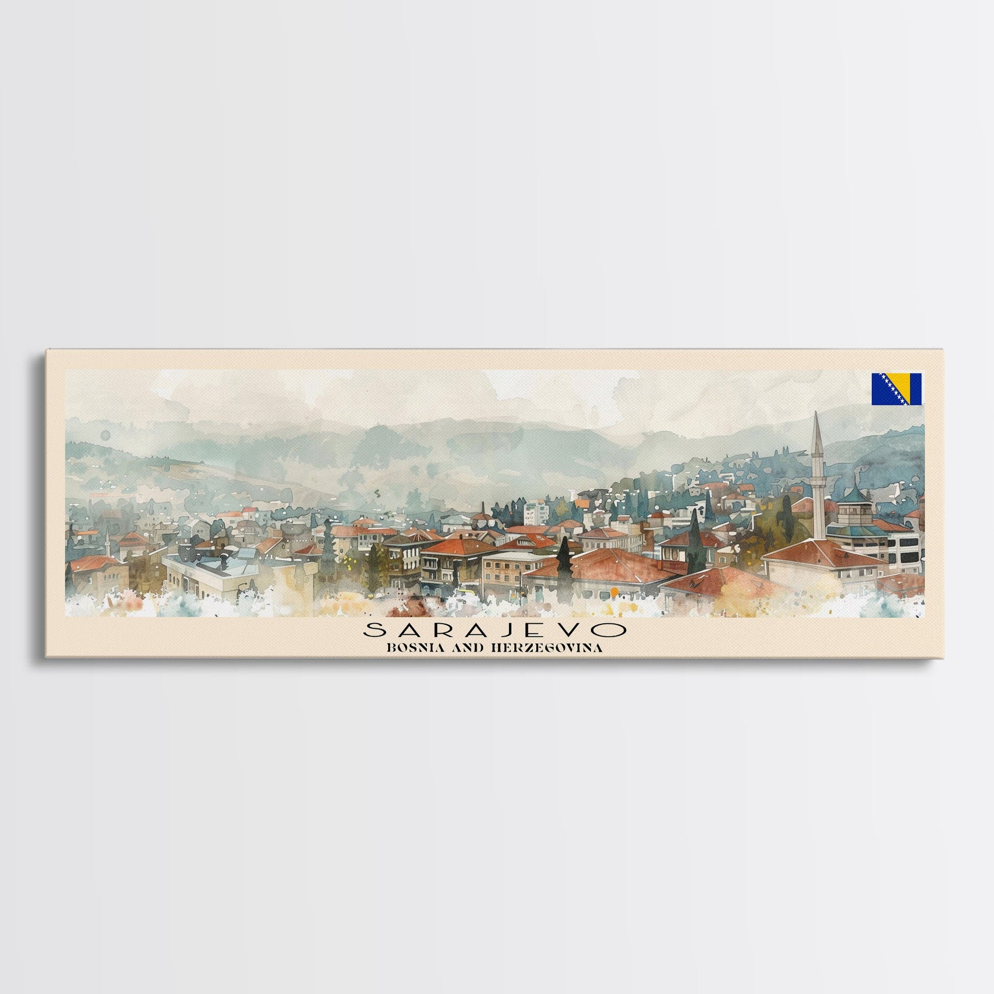 Sarajevo Bosnia Travel Art, City Art, Framed Canvas Print or Metal Wall Art, Europe Travel Poster, Panoramic Wall Art, Extra Wide Wall Art