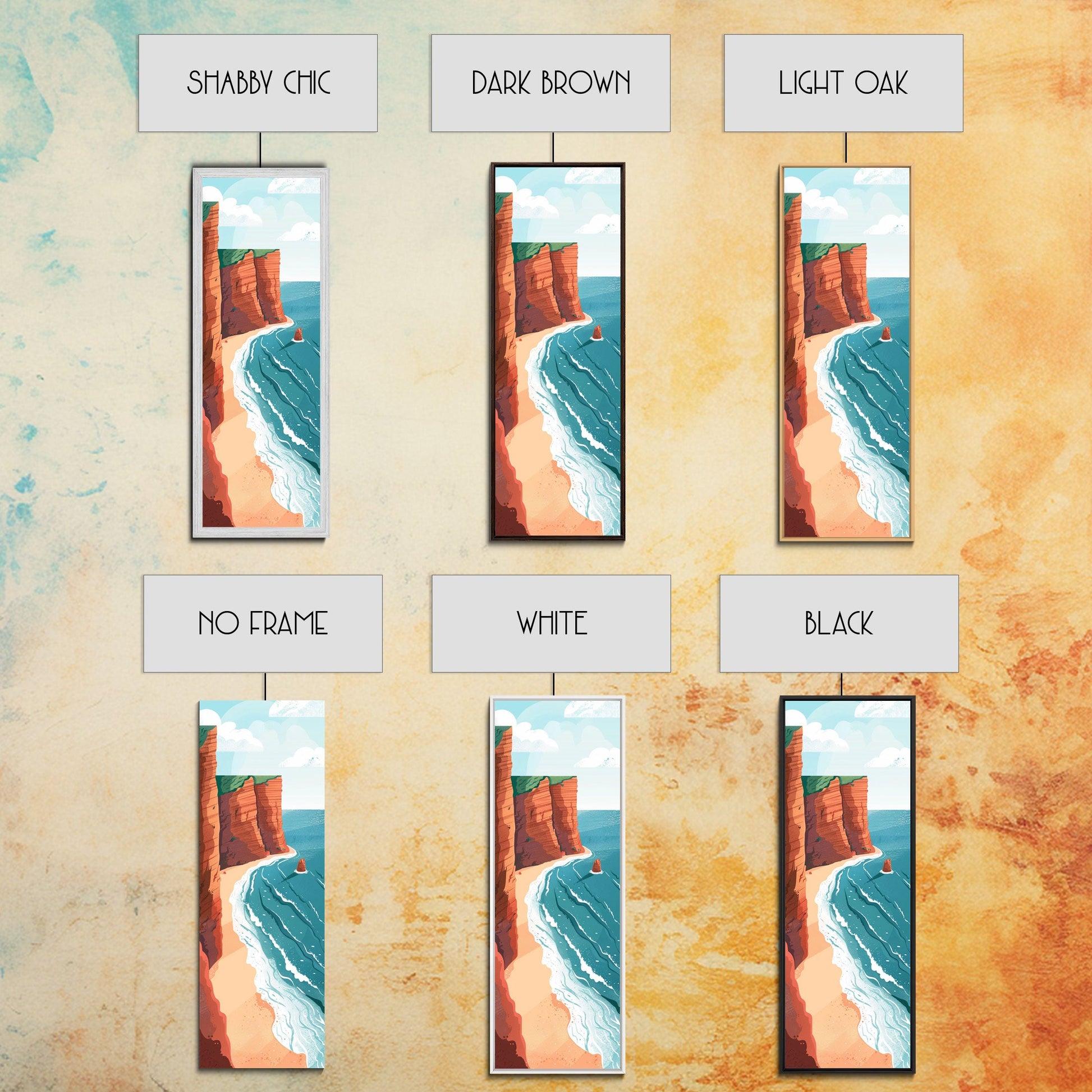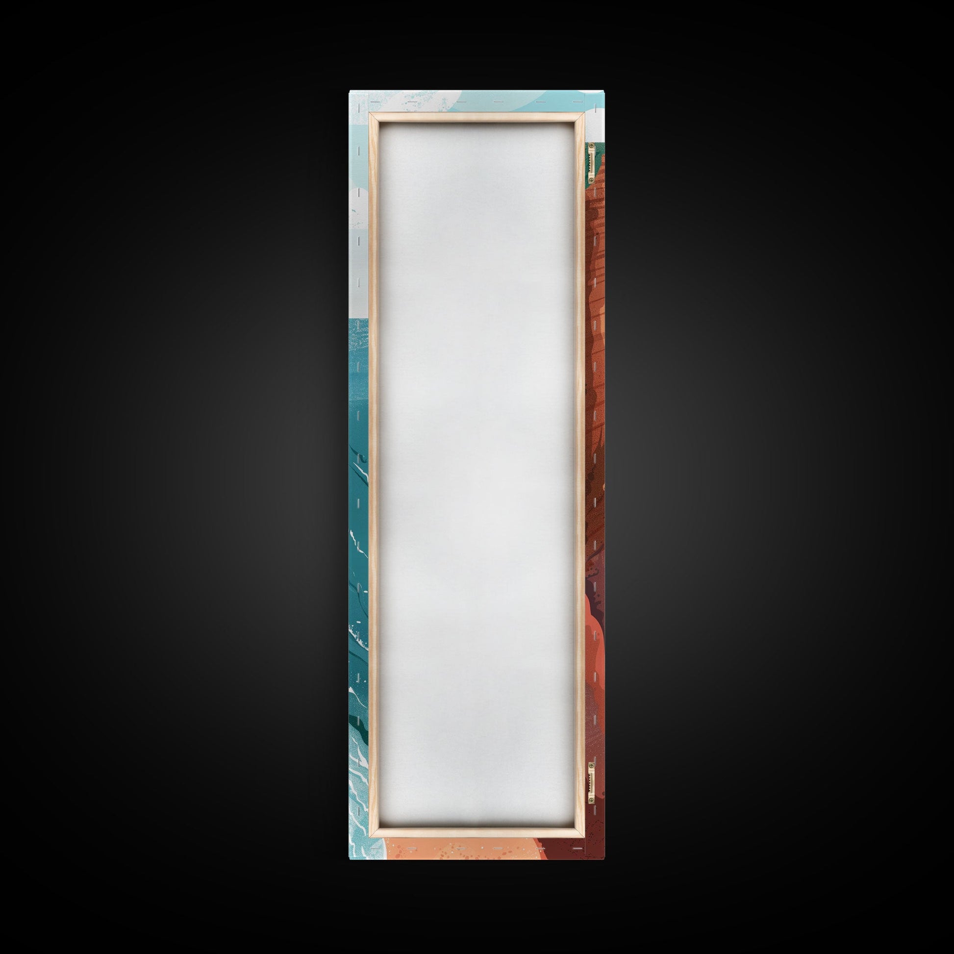 Scenic Coastal Cliffs With Ocean Waves Ukiyo-e Art Japanese Style Framed Canvas Print Tall Art Skinny Art Wood Block Print