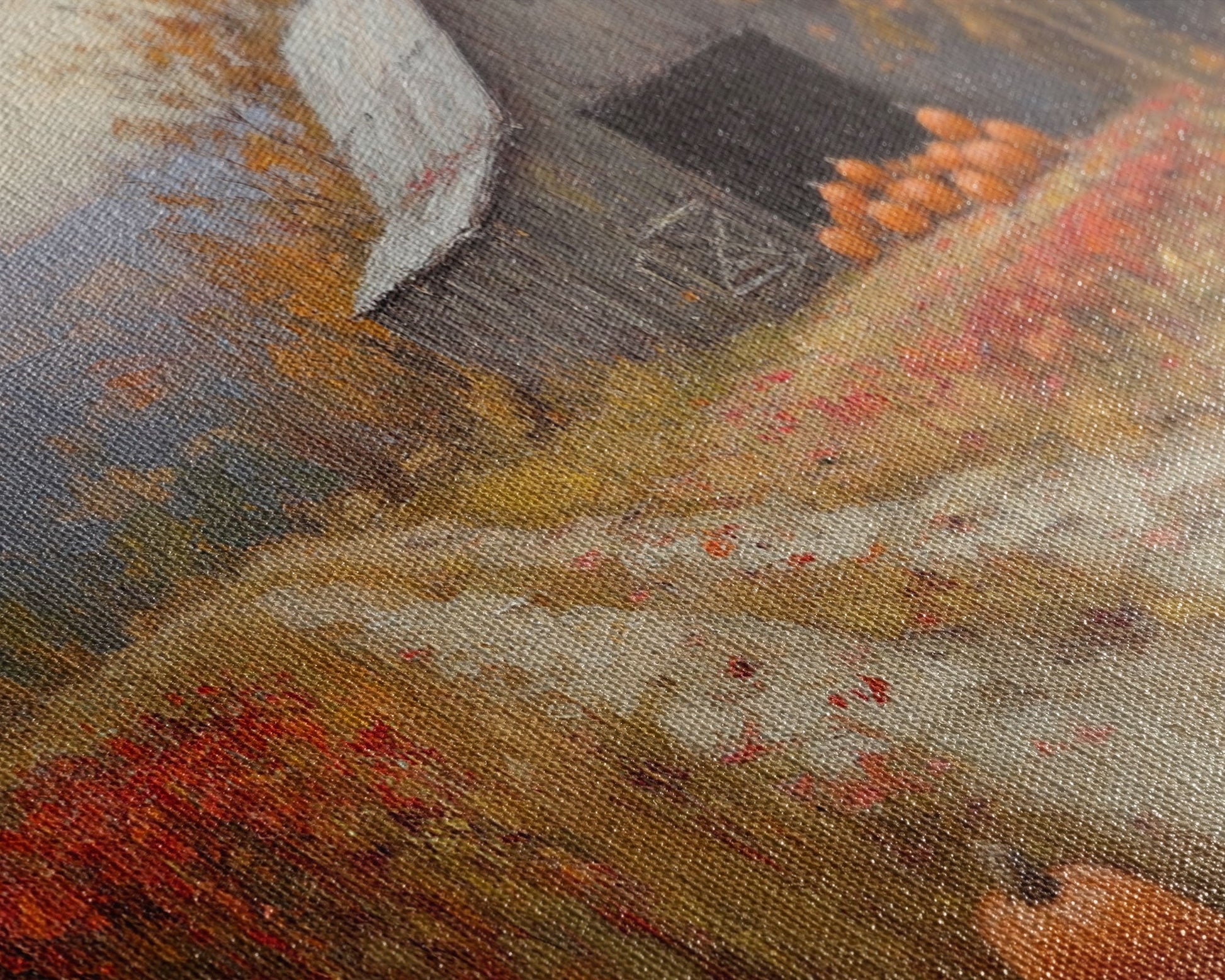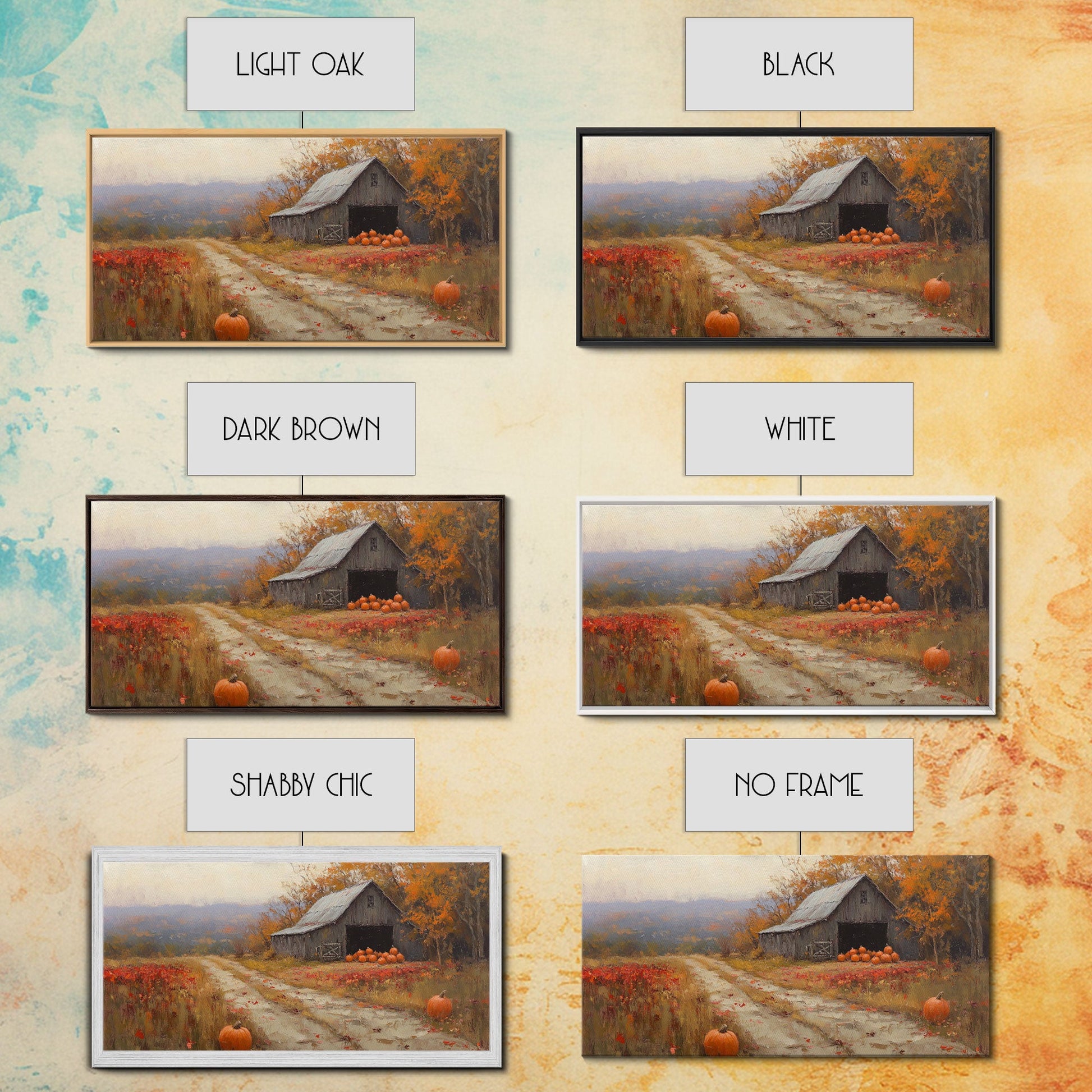 Scenic Country Farmhouse Autumn Harvest Framed Canvas Print with Pumpkins, Rustic Farmhouse Fall Art, Wall Decor, Seasonal Wall Art Gift