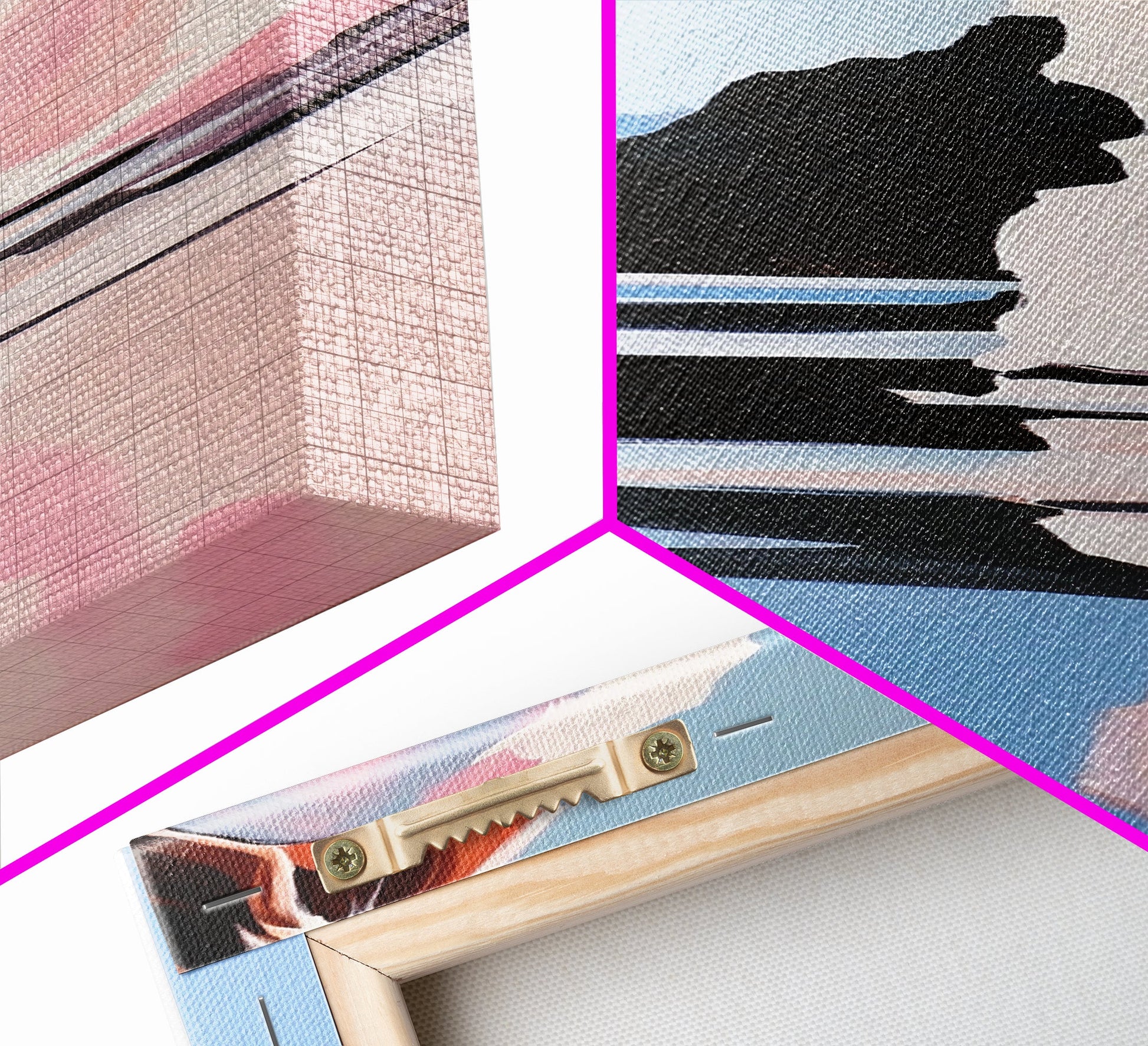Hello and thank you for taking the time to view our modern high quality giclée artwork! We offer both posters and stretched canvas prints. Our posters are printed on Ultra Matte 60 lb / 230 GSM high quality photo paper, with a thickness of 10 mil. Our canvases are printed on museum grade 350 GSM canvas material with ECO friendly archival grade ink, then hand stretched and stapled over premium, FSC certified and shrink resistant frames. Designed and built to last a lifetime.
