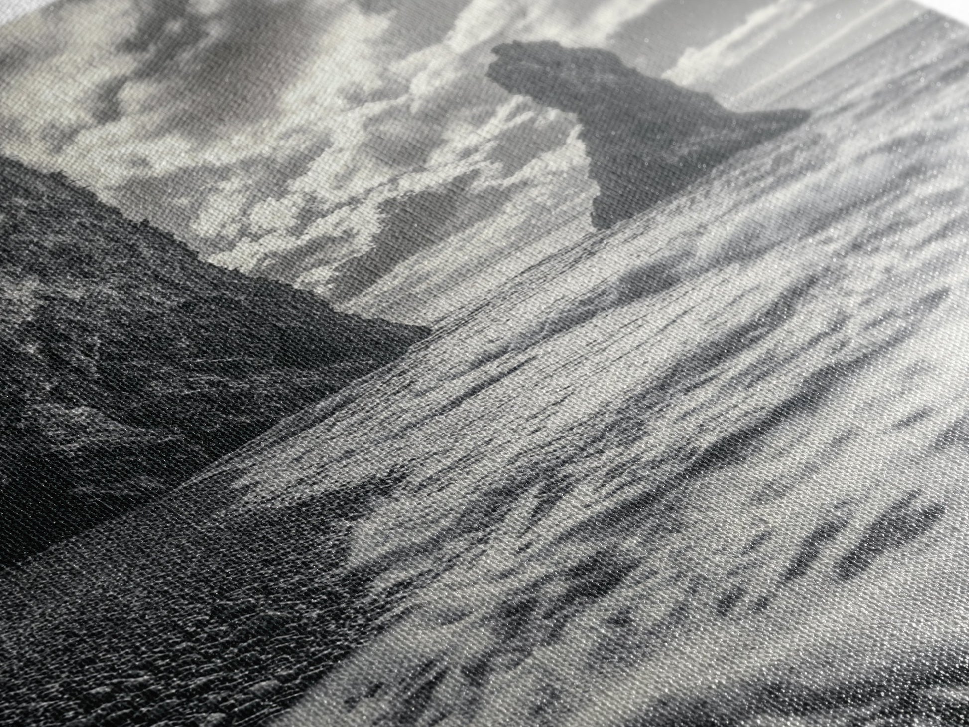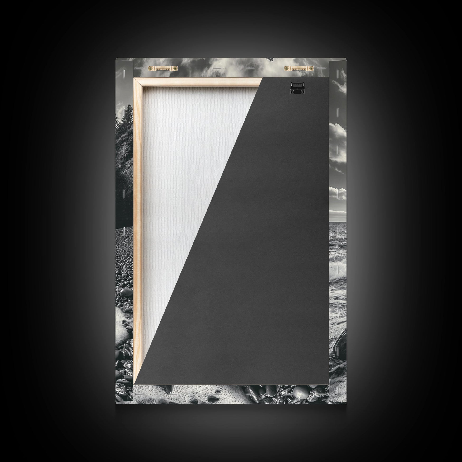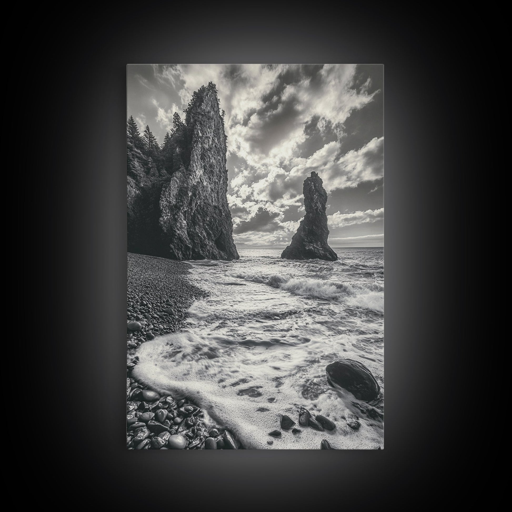 Sea Spires, Ocean Foam, Pebble Shore, Wild Coast, Framed Canvas Print, Living Room Wall Art, Dramatic Landscape, Coastal Home Decor