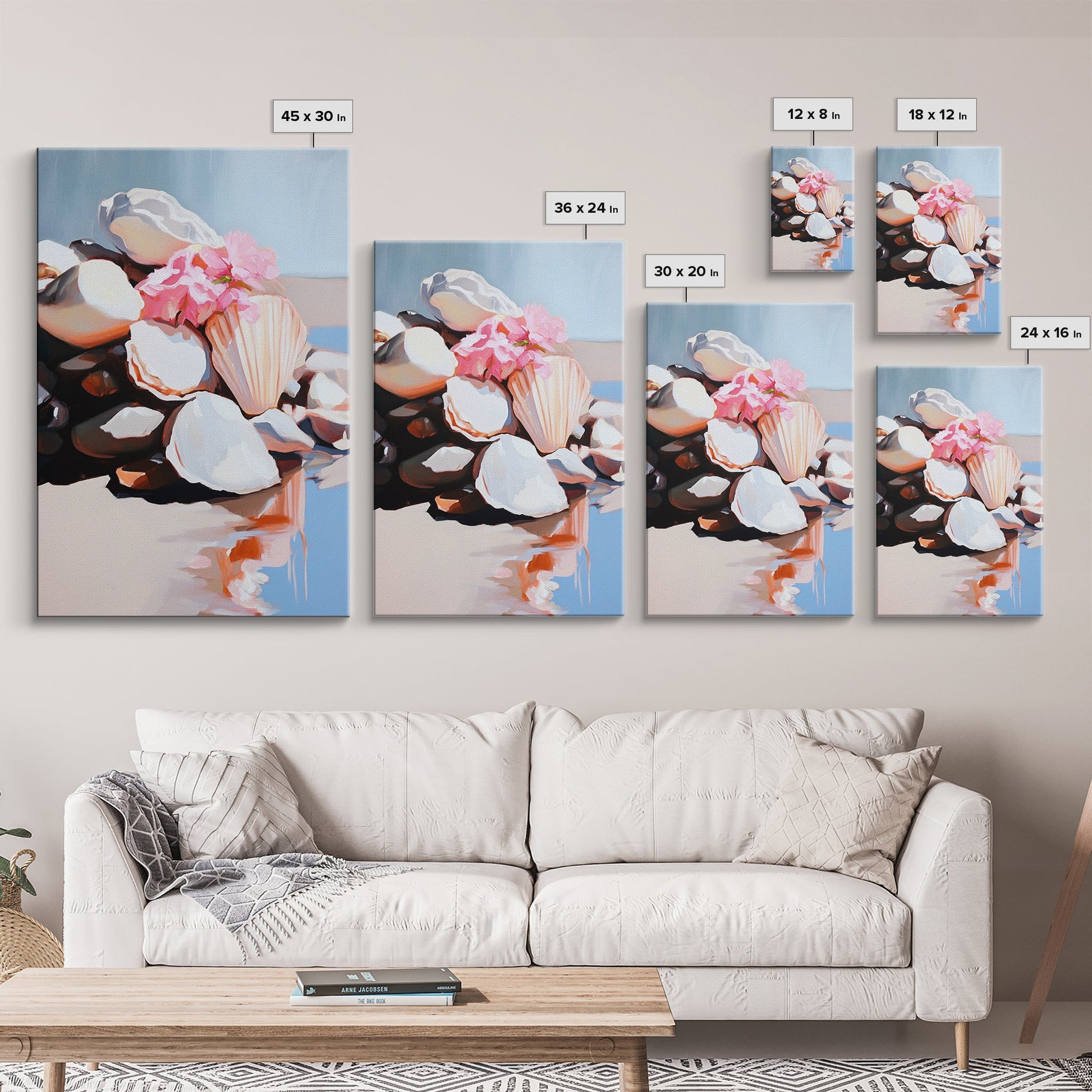 Seashell Collection, Beach Treasures, Coastal Aesthetic, Nautical Wall Art, Framed Canvas Print, Ocean Decor, Living Room Artwork