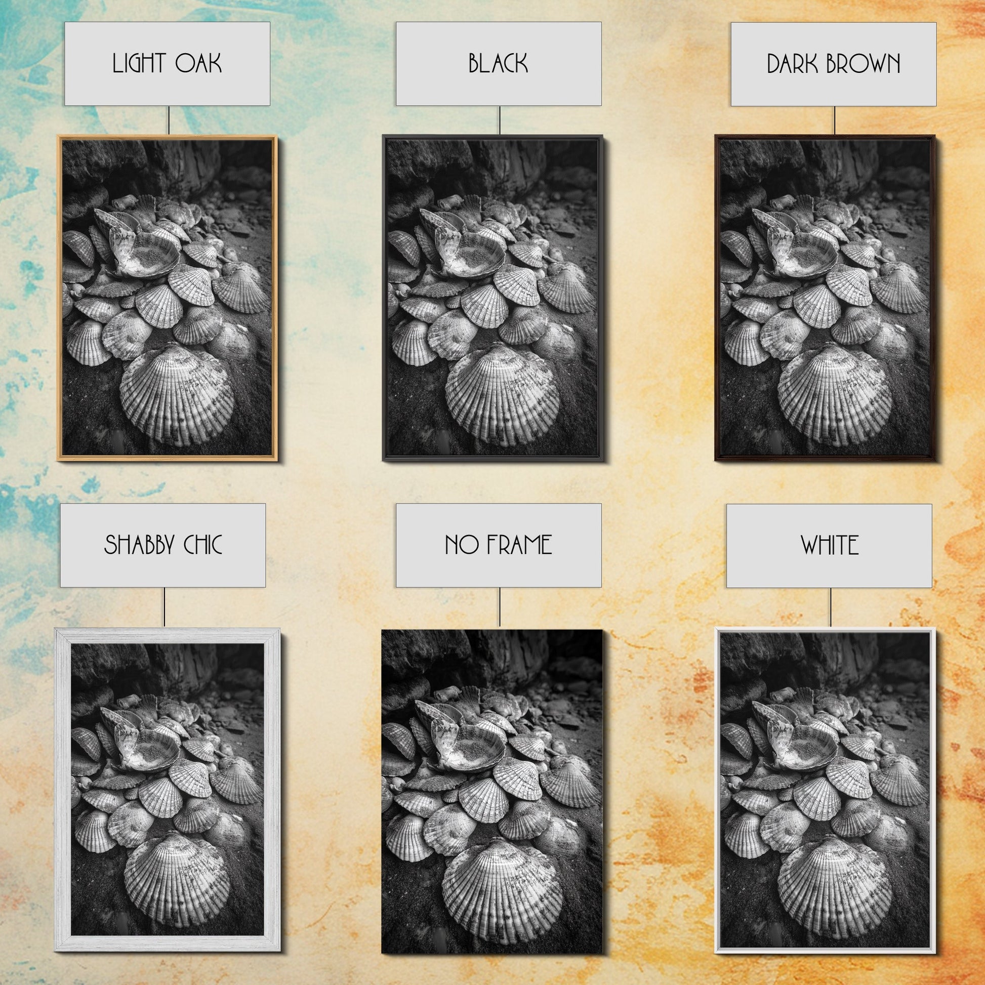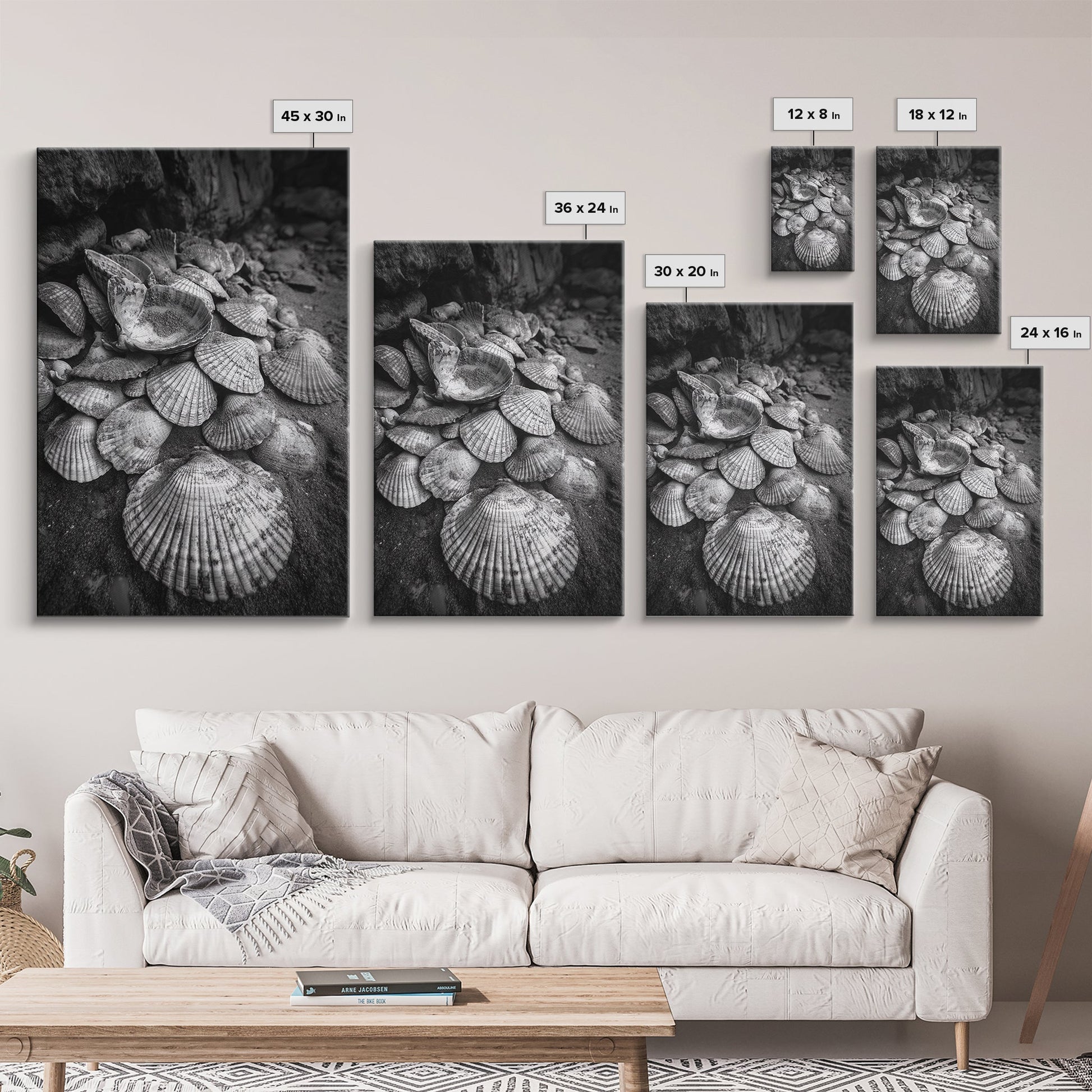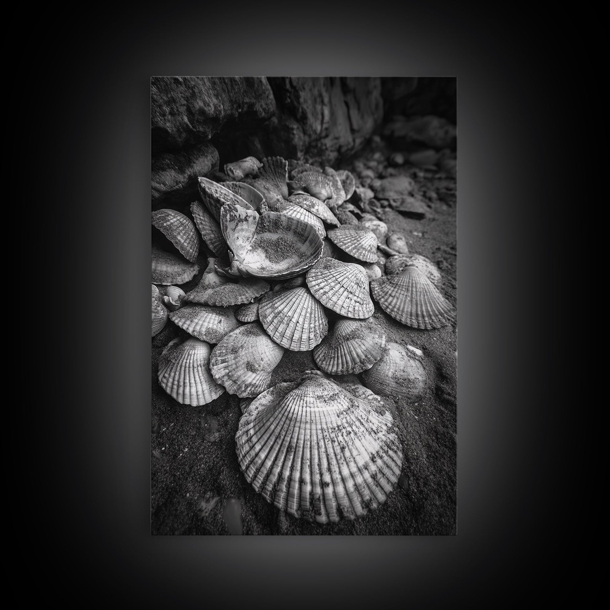 Seashell Pile, Textured Beach, Coastal Treasures, Natural Beauty Framed Canvas Print, bathroom decor, shell art, beach wall style
