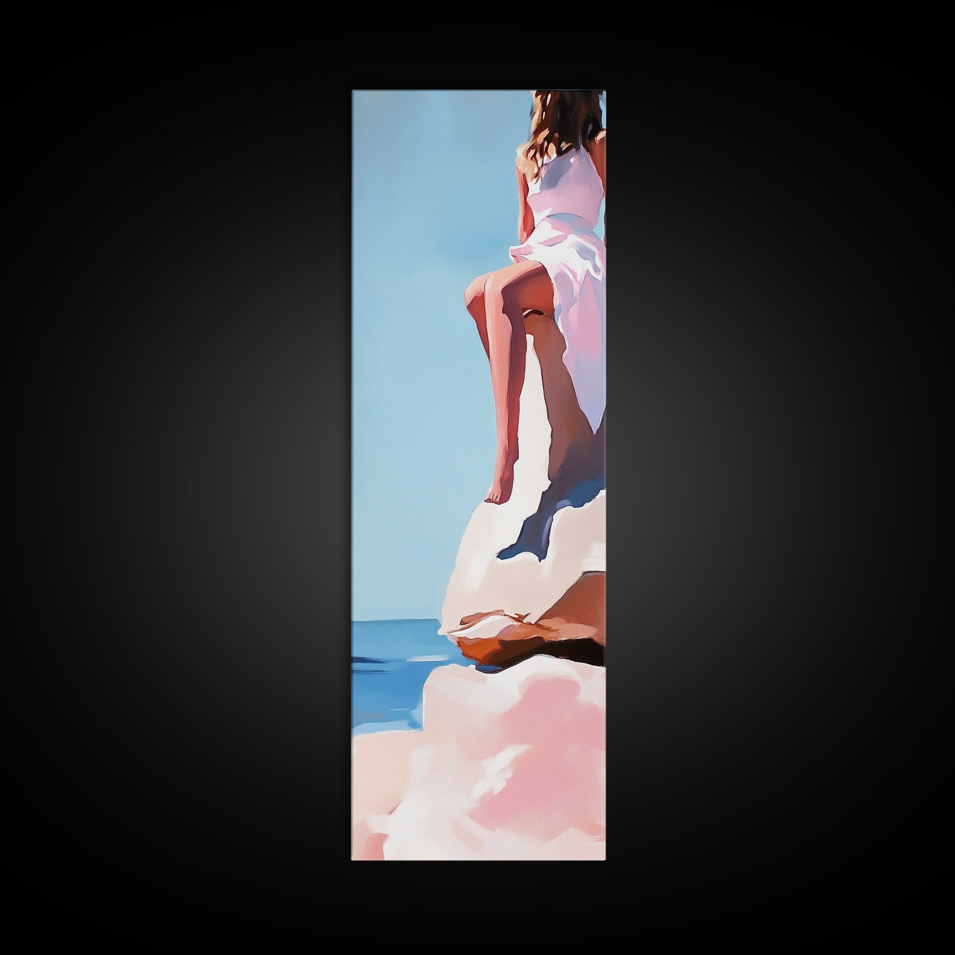 Seaside Muse, Minimalist Beach Art, Boho Coastal Wall Decor, Serene Ocean View, Contemporary Painting, Canvas Print, Bedroom Wall Art