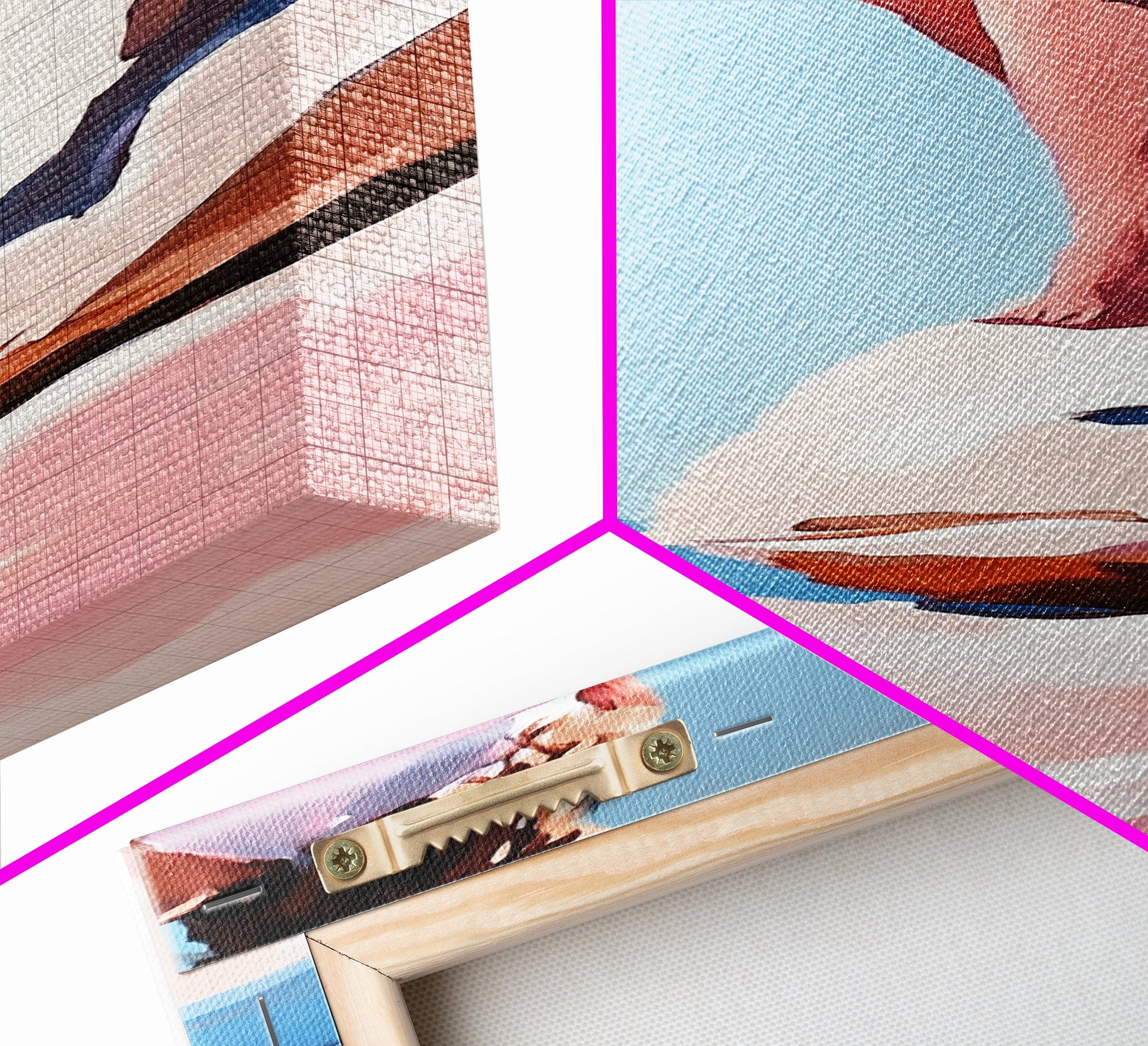 Hello and thank you for taking the time to view our modern high quality giclée artwork! We offer both posters and stretched canvas prints. Our posters are printed on Ultra Matte 60 lb / 230 GSM high quality photo paper, with a thickness of 10 mil. Our canvases are printed on museum grade 350 GSM canvas material with ECO friendly archival grade ink, then hand stretched and stapled over premium, FSC certified and shrink resistant frames. Designed and built to last a lifetime.