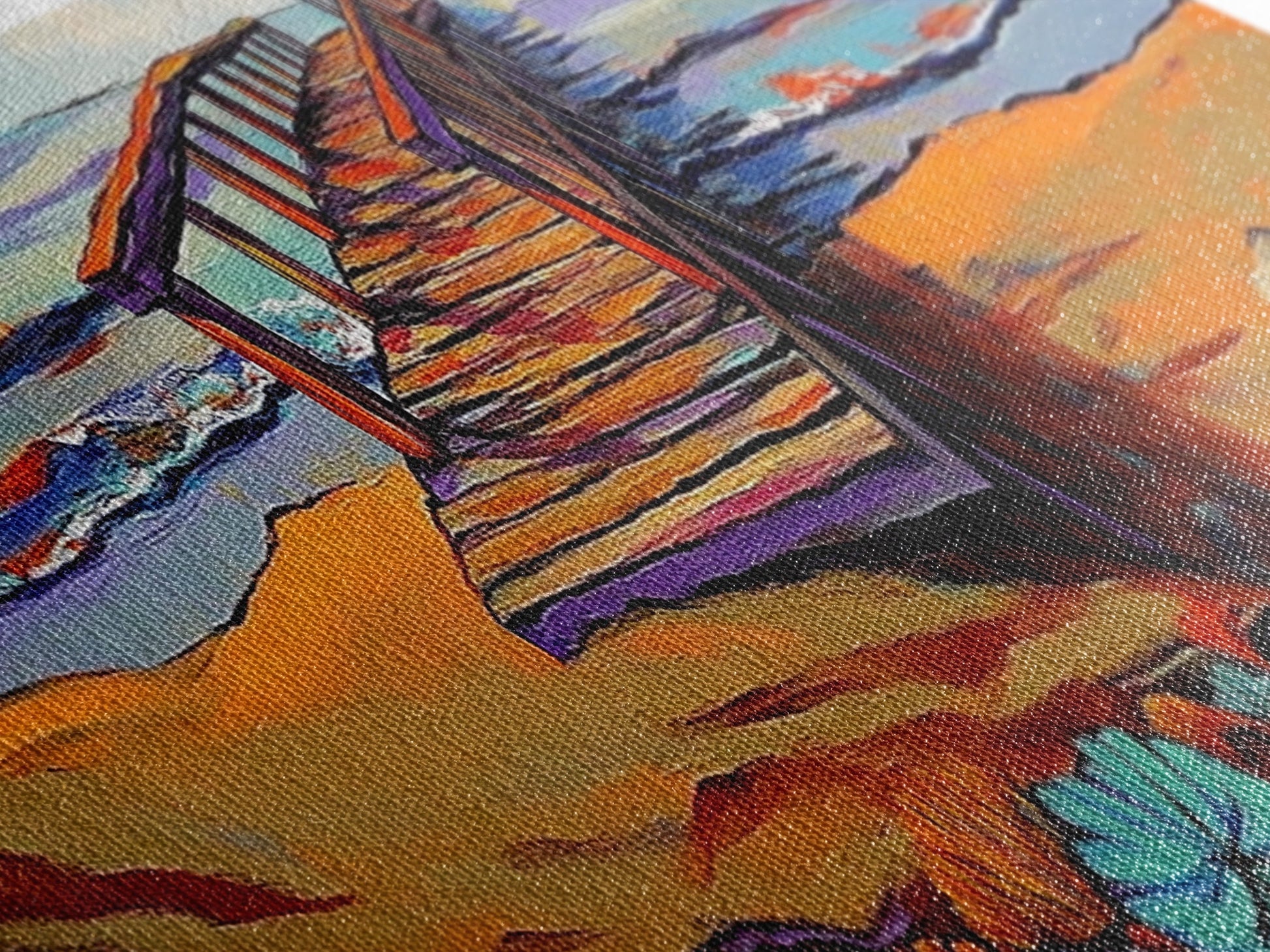 Most of our canvases are made in the USA, with the exception of canvases ordered with the light oak unstained frames, and any large canvases (24x48, 30x60, 16x48 and 20x60) ordered WITH a frame. These are temporarily made in and shipped from Europe, while we try to find a more consistent supplier in the USA.