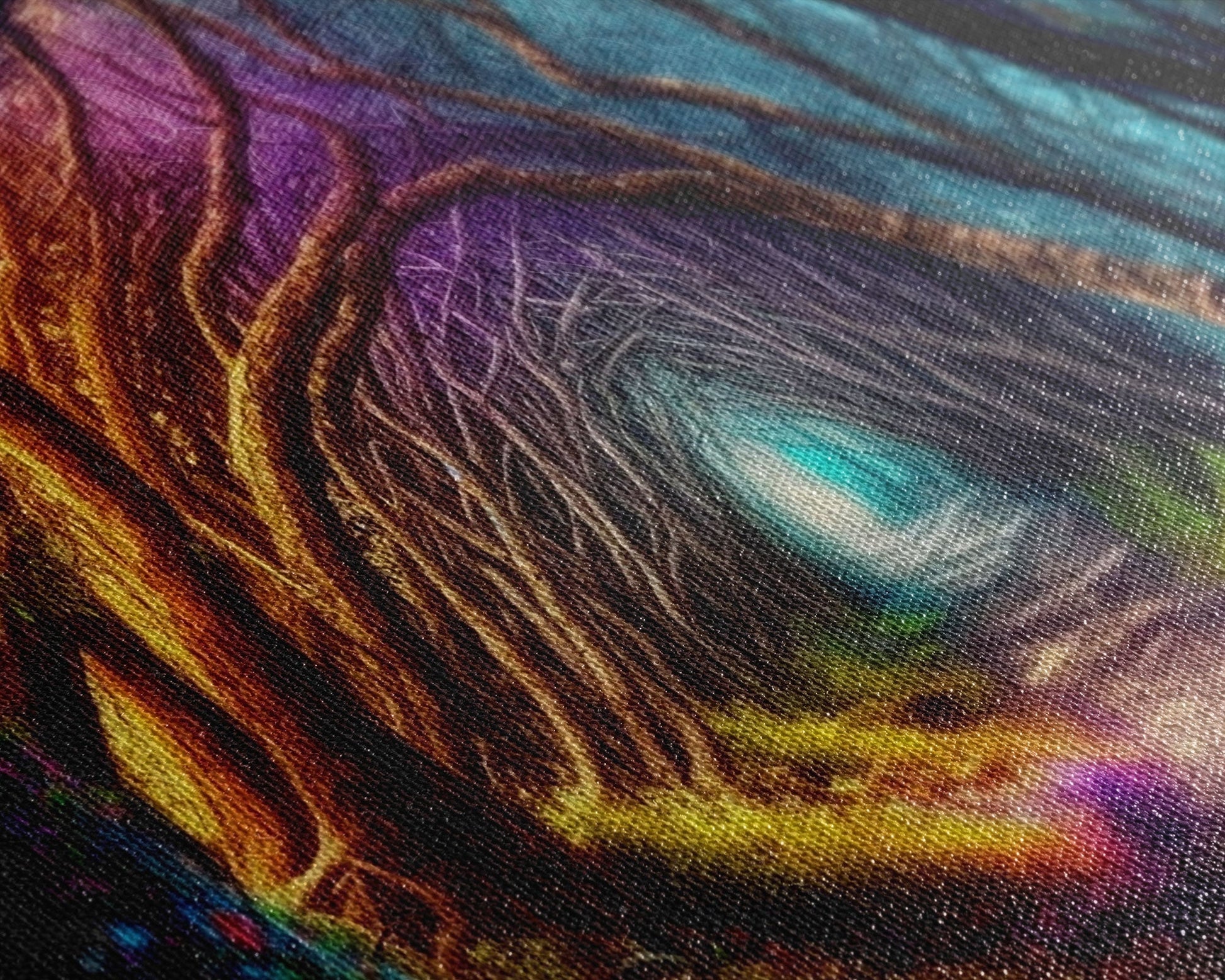 Secret Path, Fantasy Art, Pop Art Forest Landscape, Framed Canvas Print, Colorful Forest Painting, Living Room Art, Glowing Magical Forest