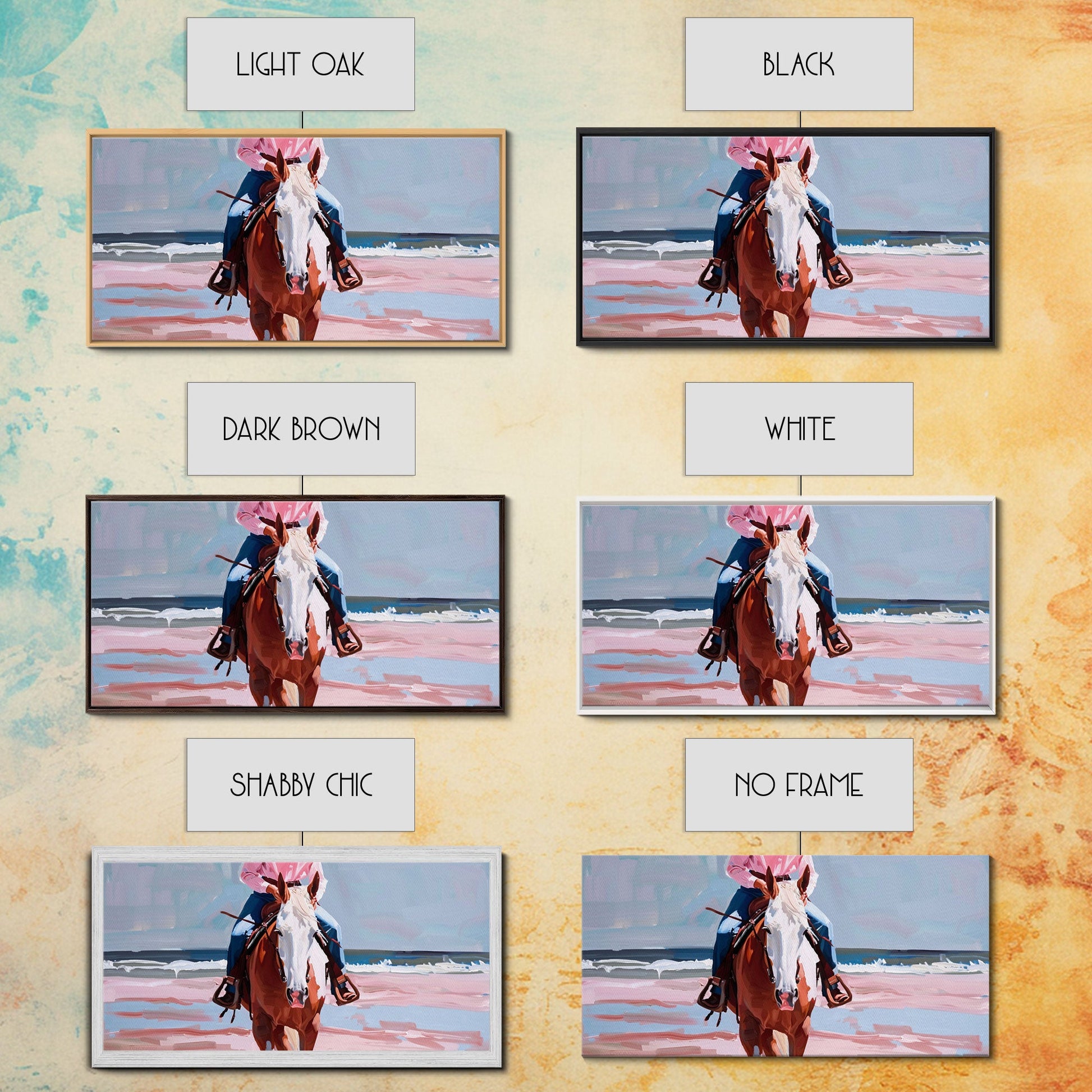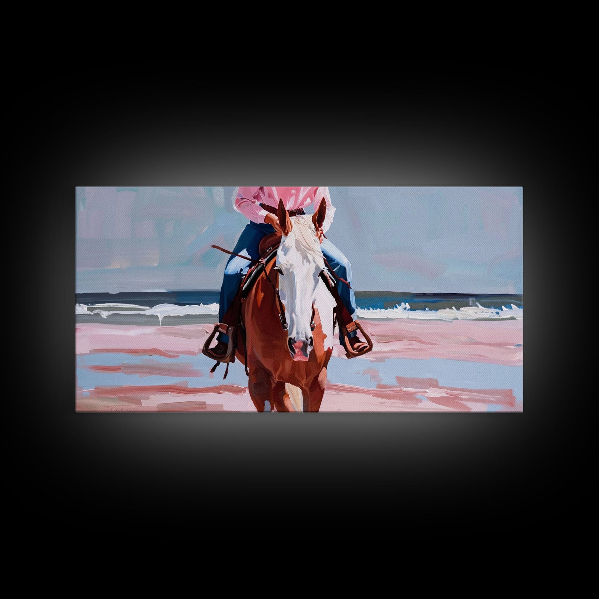 Serene Beach Horse Riding Scene, Elegant Framed Canvas Print, Ideal for Coastal Living Room Art, Beach Bedroom Decor, Horse Wall Art