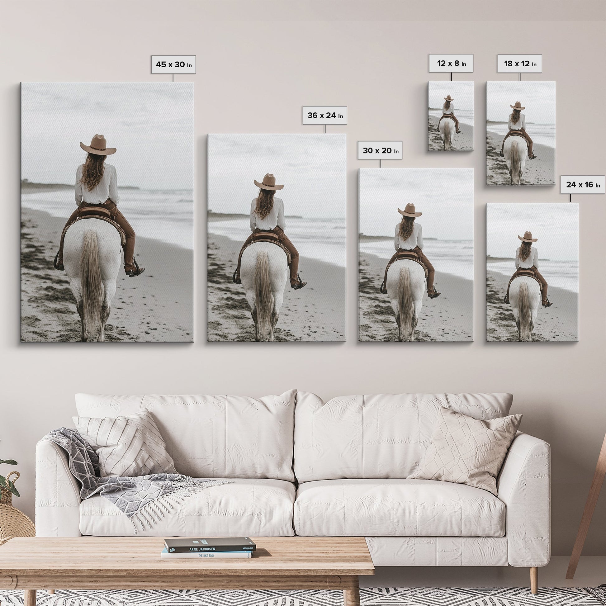 Serene Beach Ride Canvas Print Horse and Ocean Wall Art Coastal Cowgirl Rustic Decor Framed Canvas Home Living Room Artwork Gift