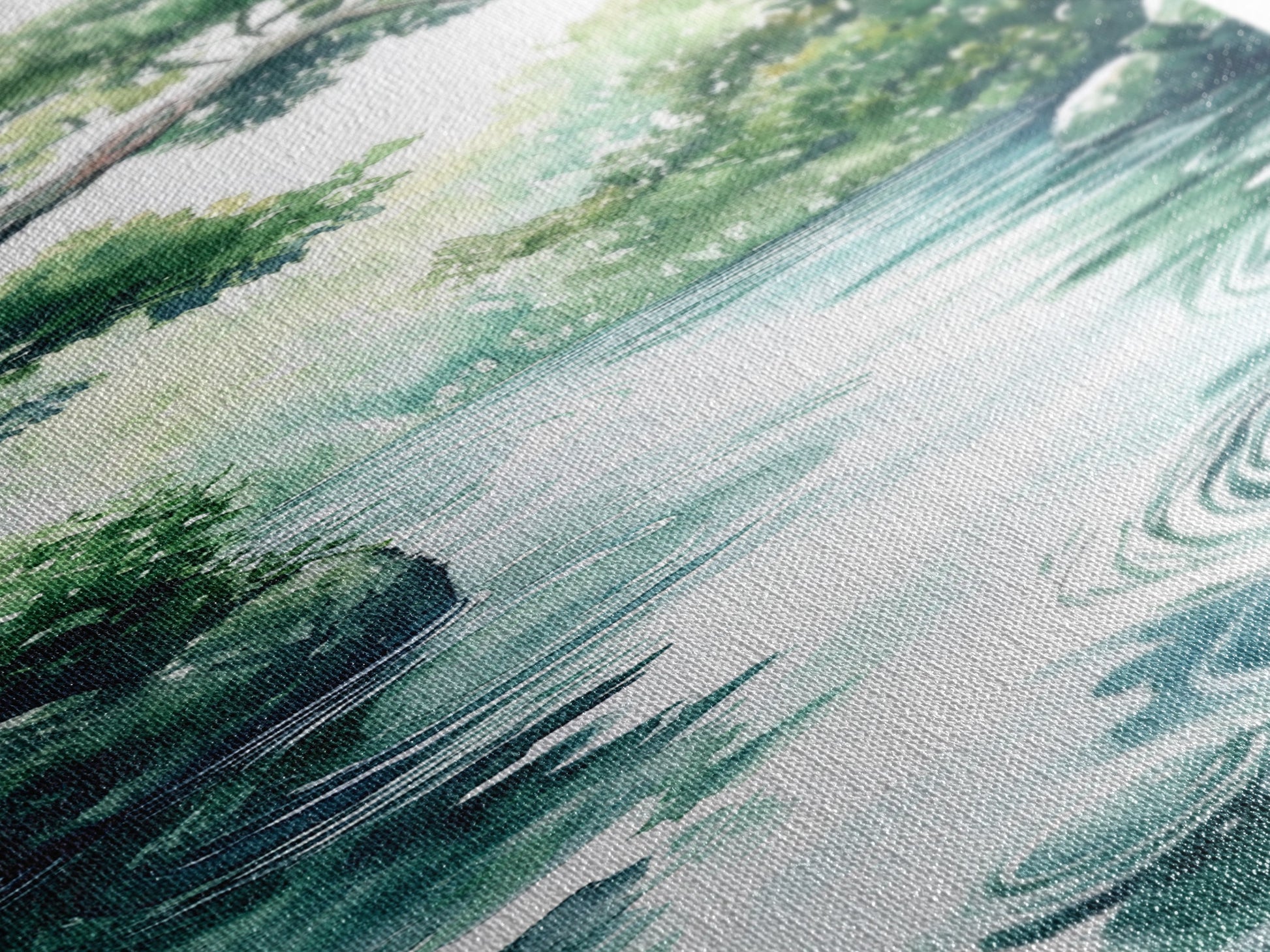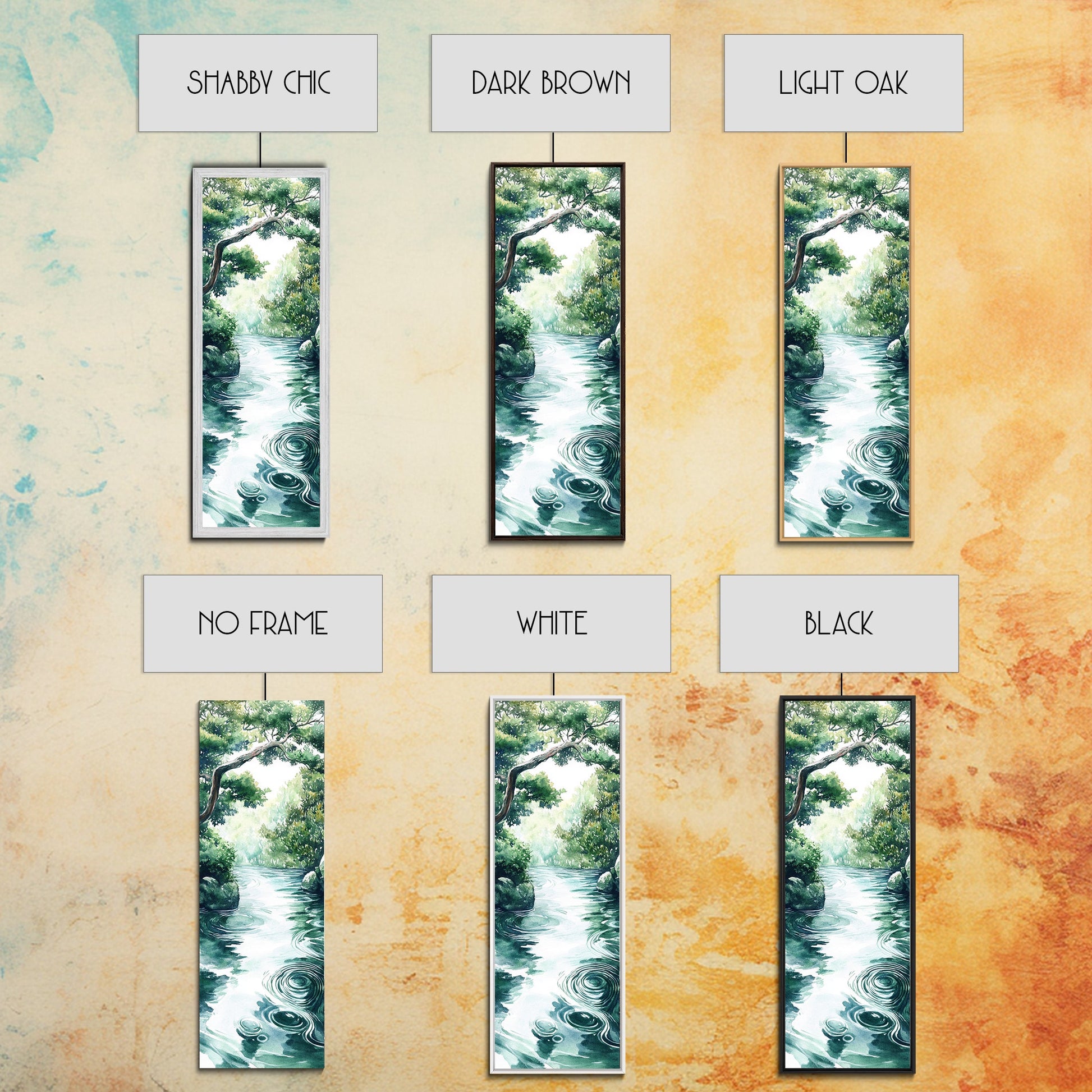 Serene Forest Stream Framed Canvas Print Coastal Landscape Art Green Wall Art Rustic Decor Vertical Art Guest Room Wall Decor