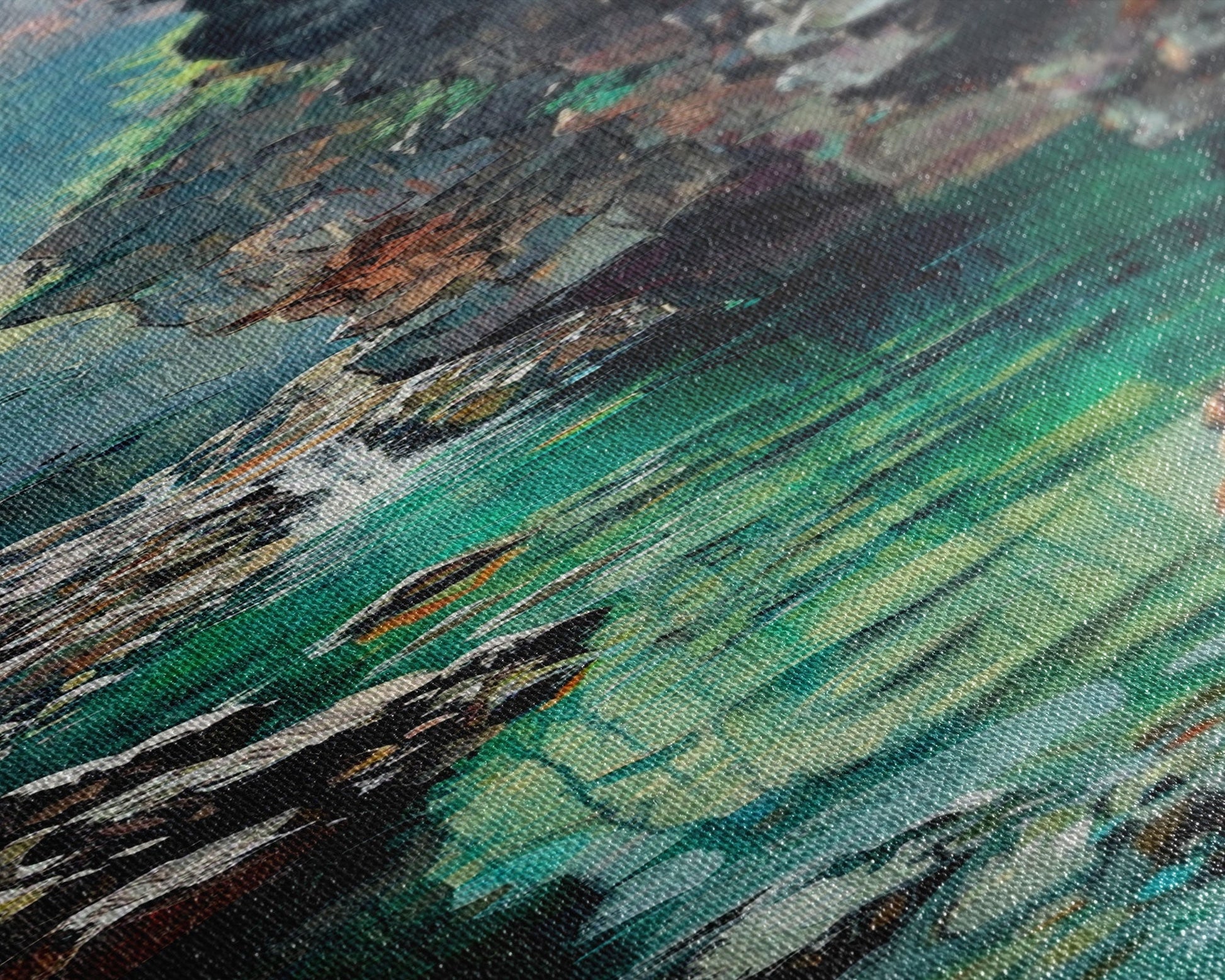 Most of our canvases are made in the USA, with the exception of canvases ordered with the light oak unstained frames, and any large canvases (24x48, 30x60, 16x48 and 20x60) ordered WITH a frame. These are temporarily made in and shipped from Europe, while we try to find a more consistent supplier in the USA.