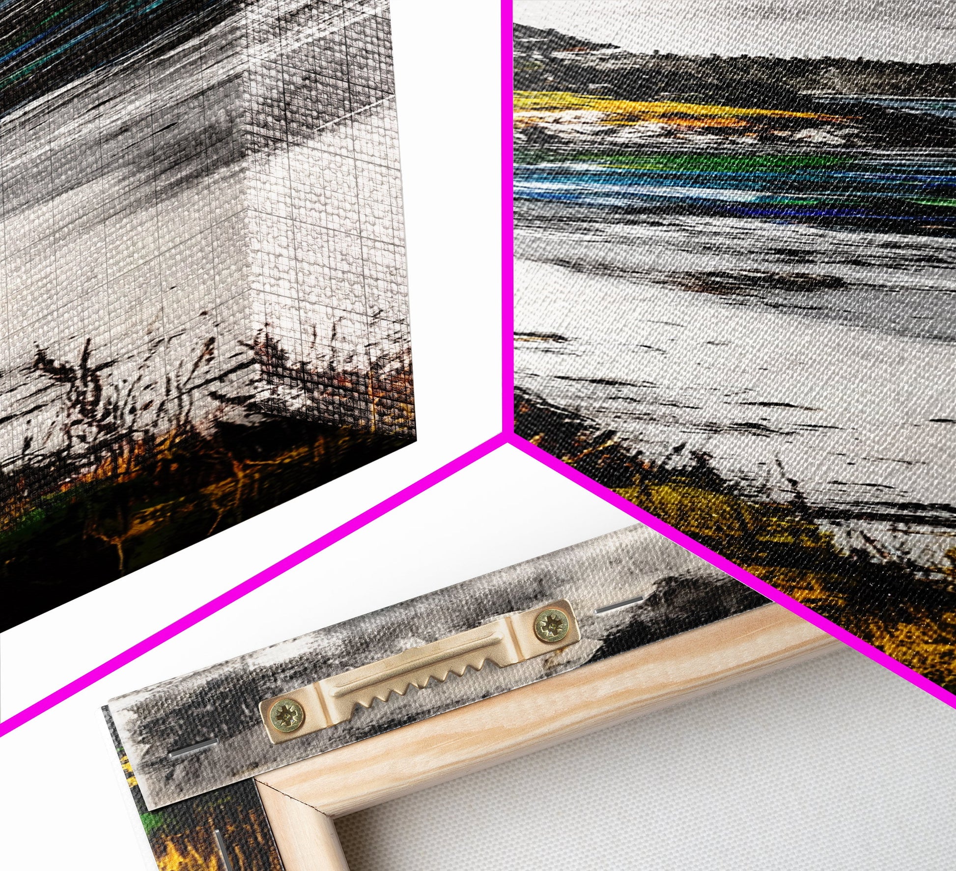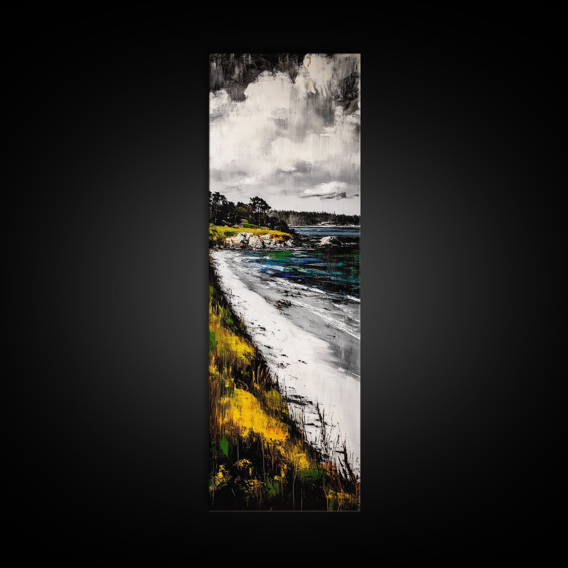 Serene Shoreline, Coastal Landscape, Framed Canvas Print, Beach Scene Painting, Ocean Wall Art, Nautical Decor, Living Room Wall Art