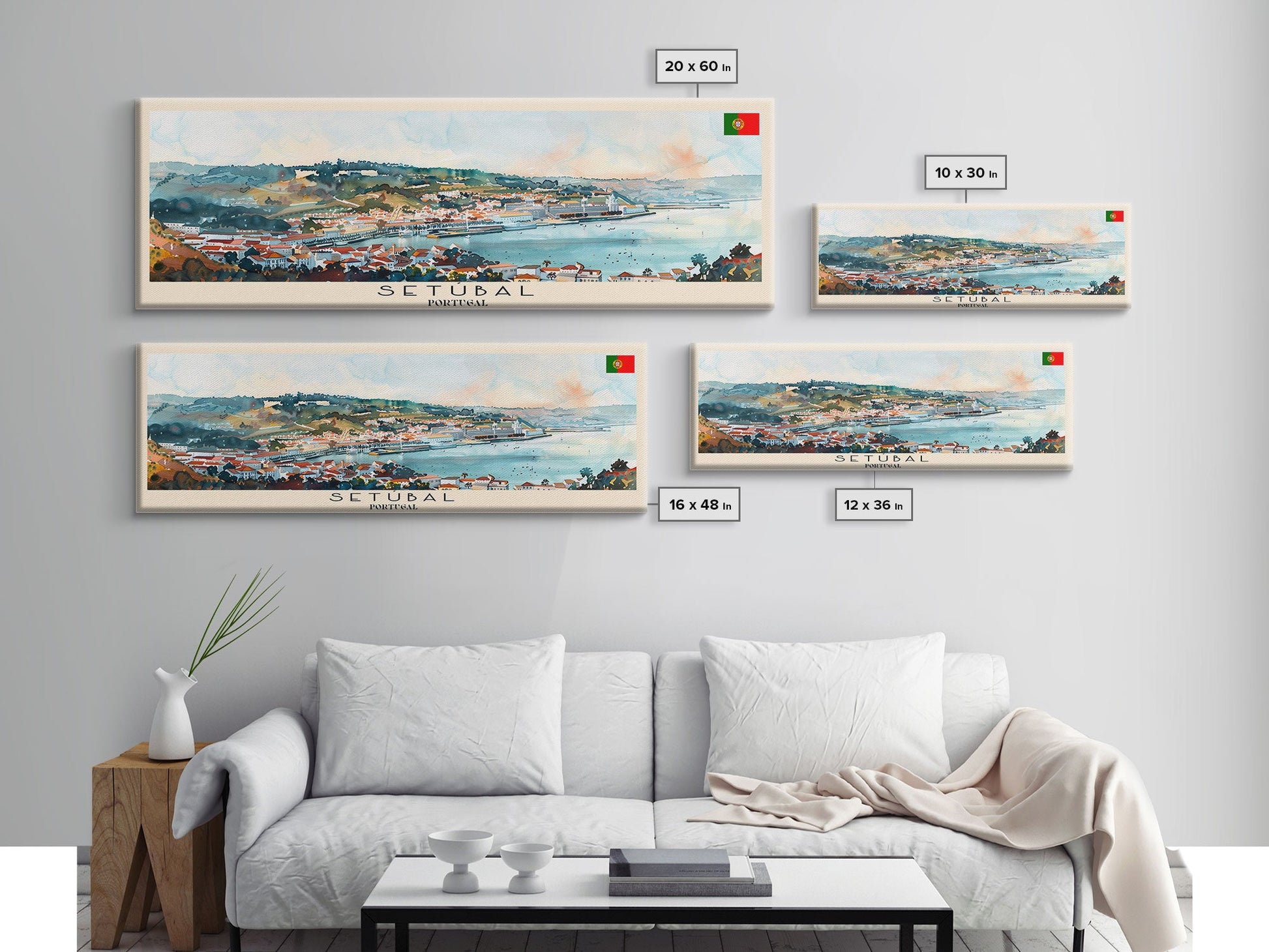 Setbal Portugal Travel Print Wall Art, Panoramic City Art, Travel Art, Wall Decor, Vacation Gift, Framed Canvas Print Or Metal Art