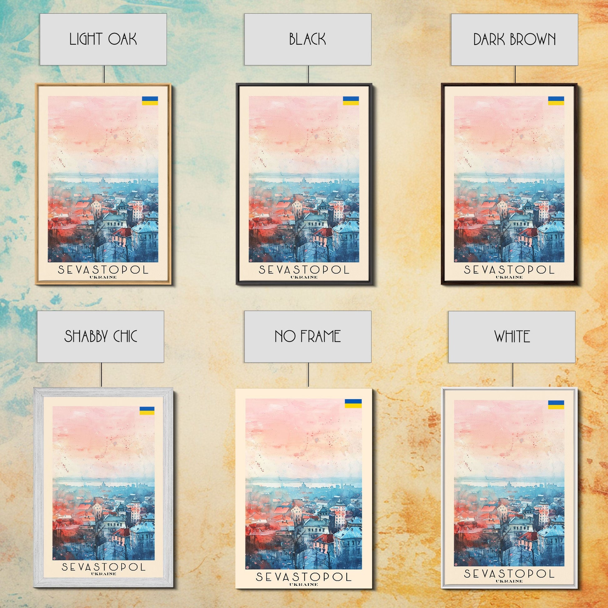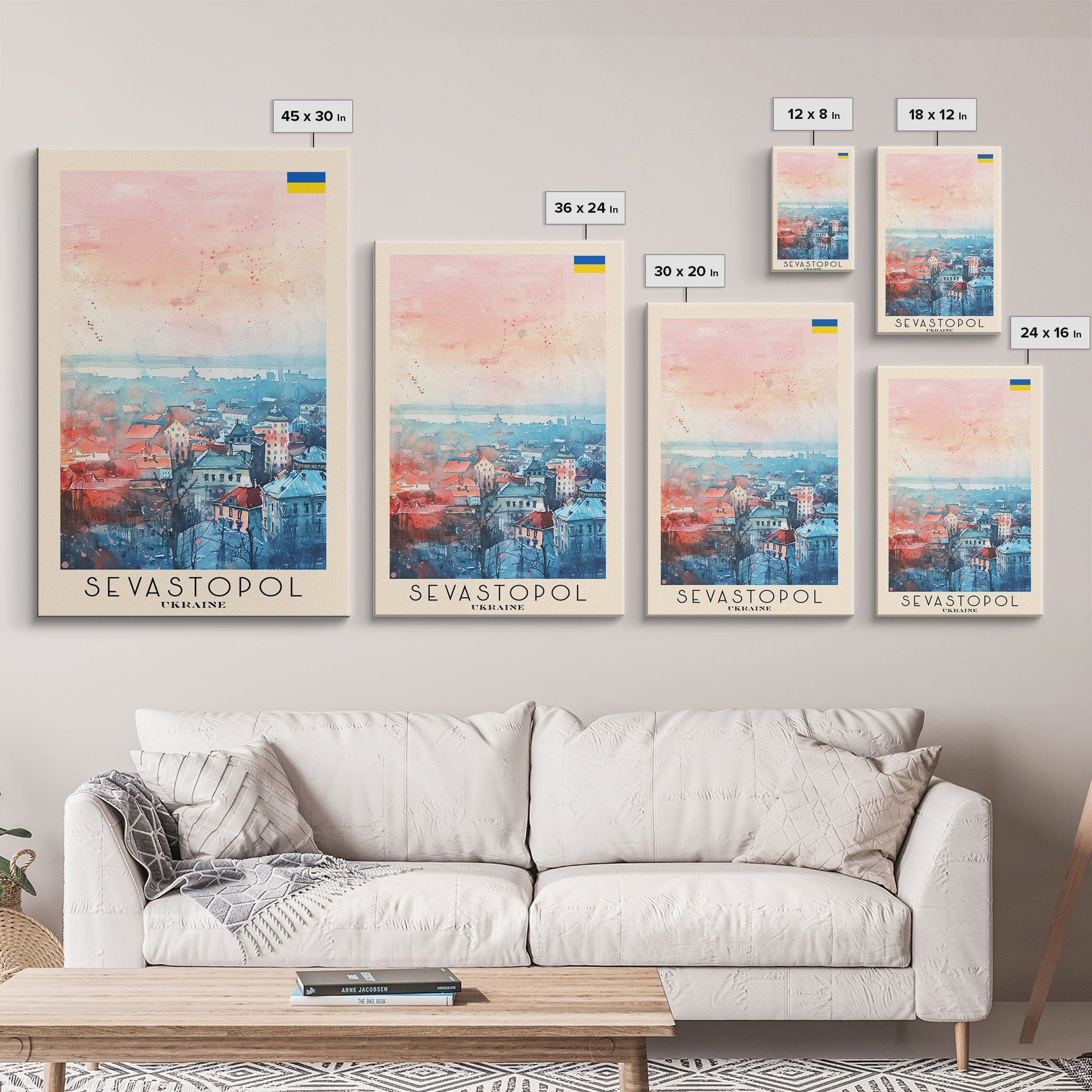Sevastopol Ukraine Travel Poster Framed Canvas Print, Watercolor Painting, Scenic Wall Art, Home Decor, Ukrainian Seaside, Classic Art