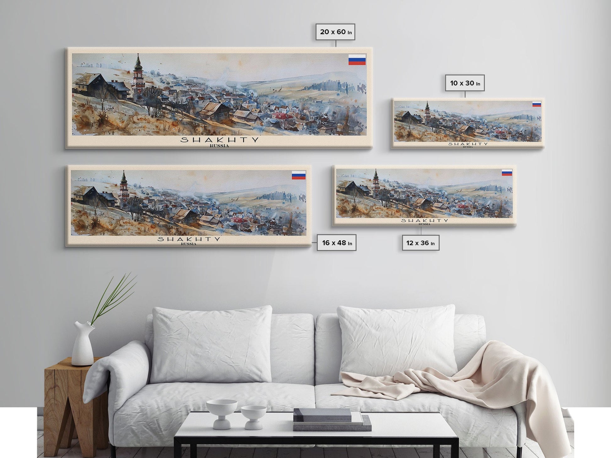 Shakhty Russia Panoramic Travel Poster, Framed Canvas Print or Metal Wall Art, Travel Art, Home Decor, Panoramic Painting, Midcentury Art