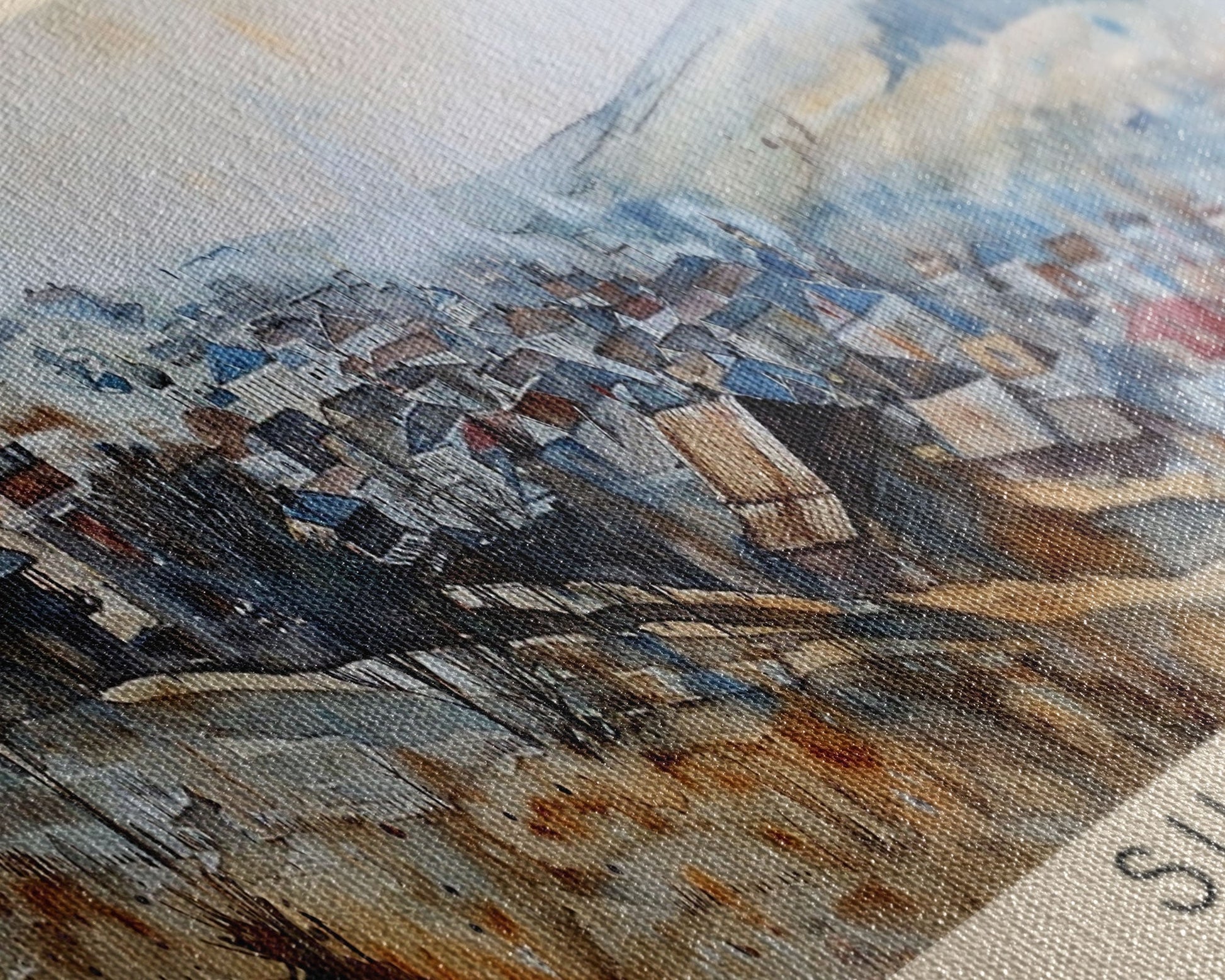 Most of our canvases are made in the USA, with the exception of canvases ordered with the light oak unstained frames, and any large canvases (24x48, 30x60, 16x48 and 20x60) ordered WITH a frame. These are temporarily made in and shipped from Europe, while we try to find a more consistent supplier in the USA.