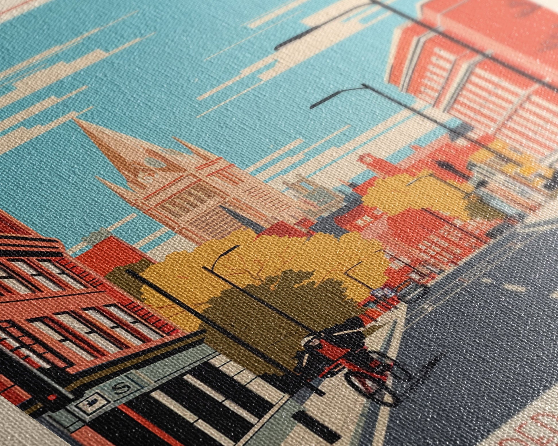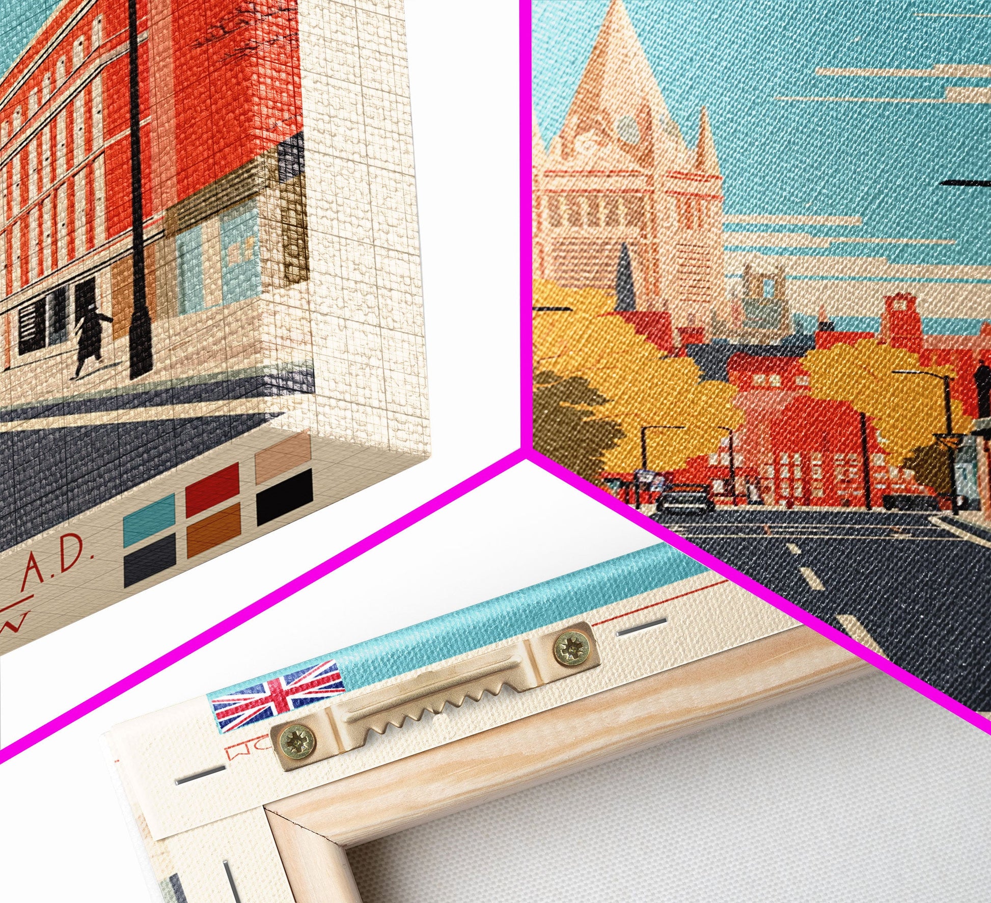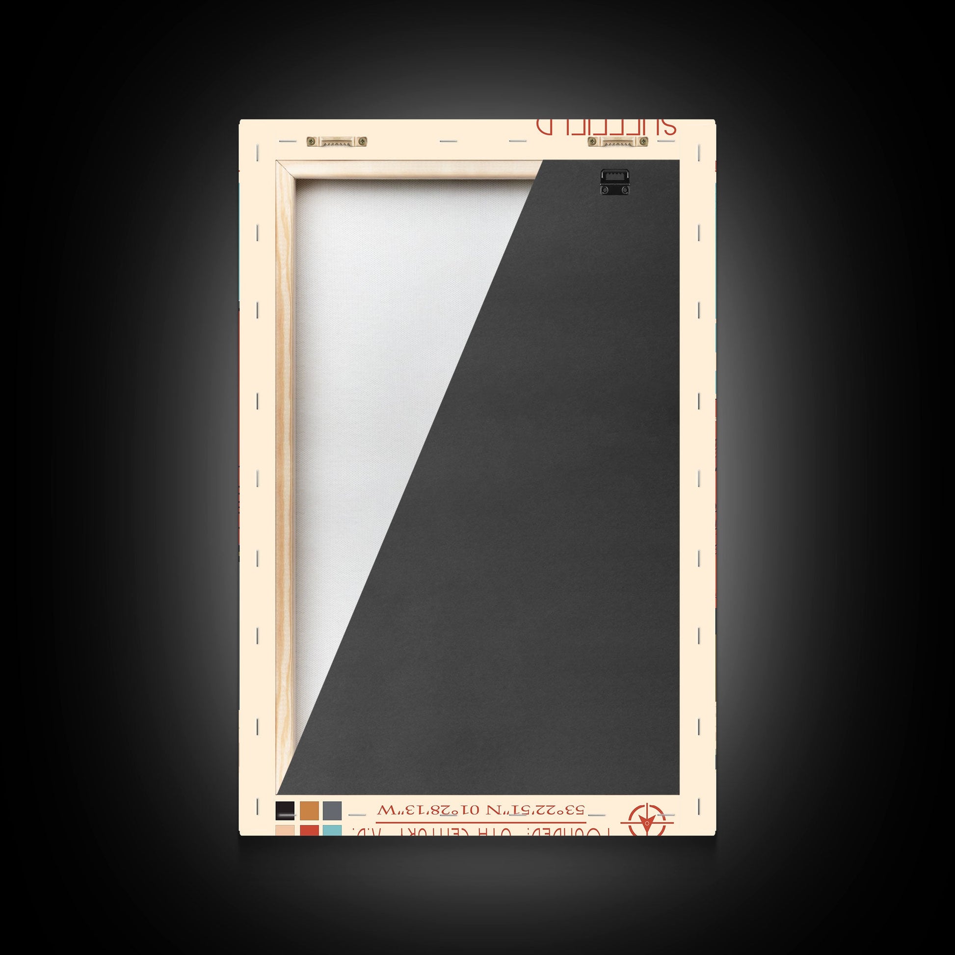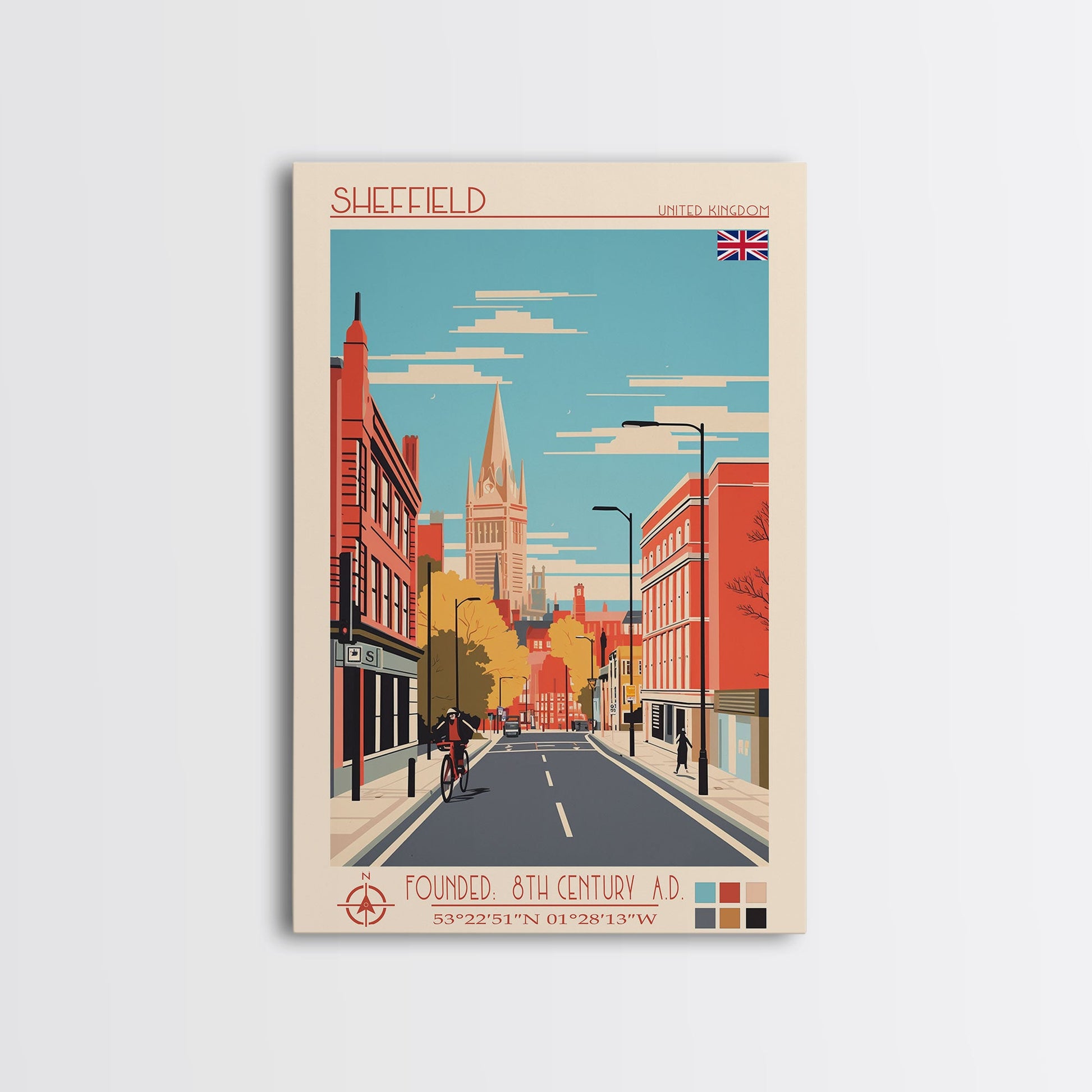Sheffield United Kingdom Travel Poster Framed Canvas Print, Midcentury Modern Art, Pop Art Wall Decor, Home Decor, Vacation Gift, Office Art