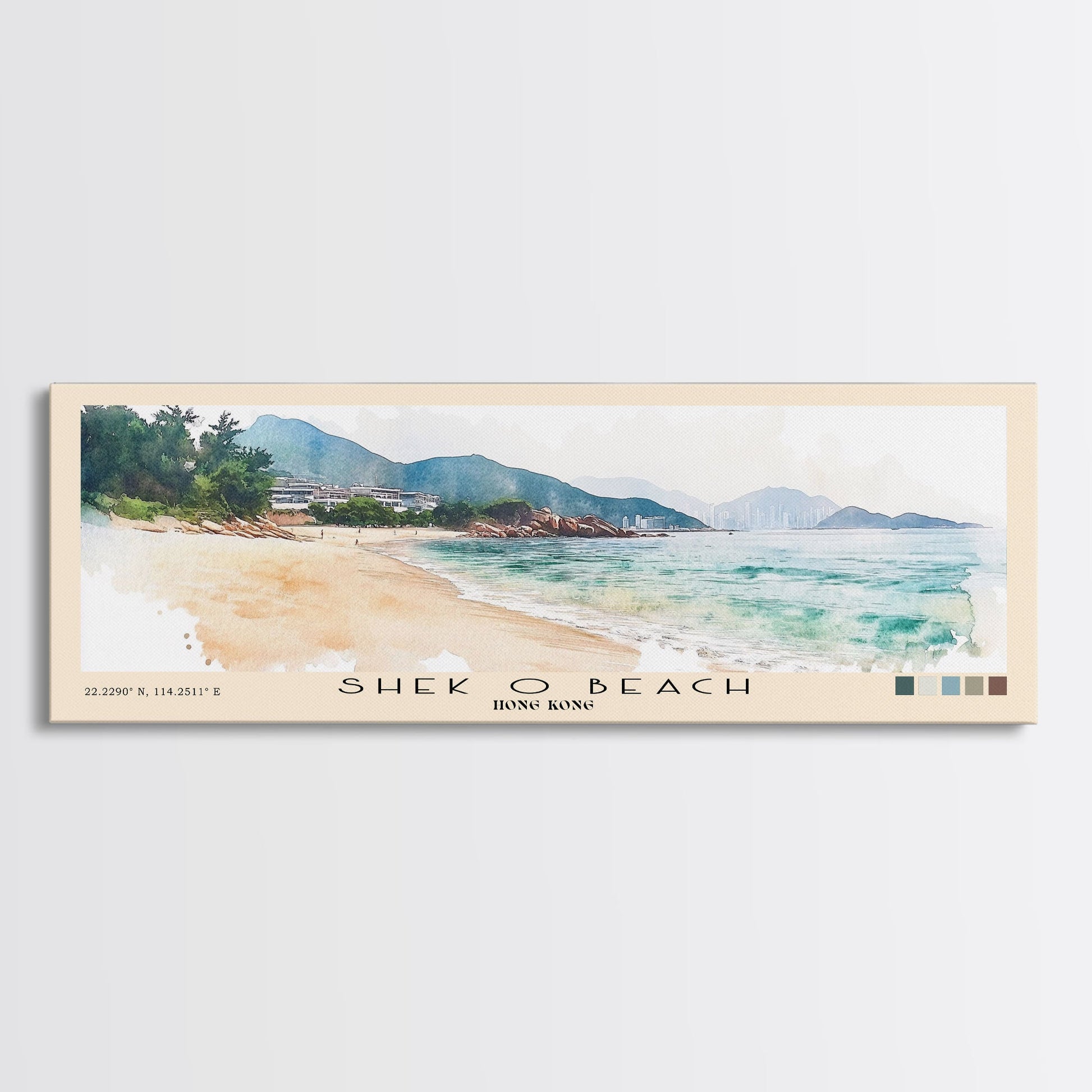 Shek O Beach, Hong Kong Watercolor Print, Vacation Gift, Hong Kong Wall Art, Beach Painting, Beach Decor, Large Wall Art, Wood Frame Art