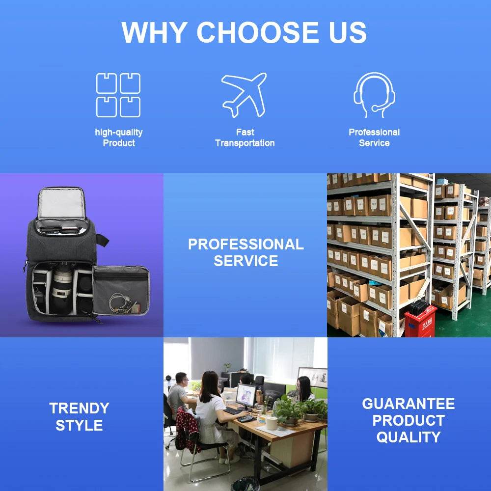 Unlike many competitors, our Shockproof DSLR Camera Bag offers enhanced protection and flexibility, allowing you to focus on your creative vision without worrying about the safety of your gear. Its unique combination of lightweight design and superior protection makes it a top choice among professional photographers.