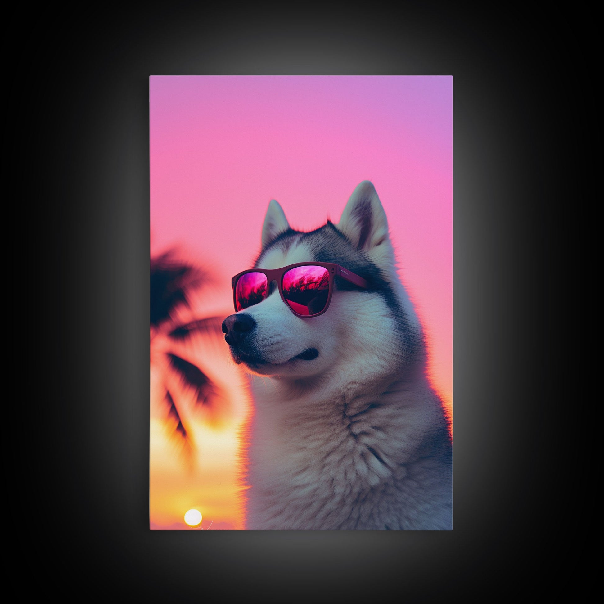 Siberian Husky In Pink Sunglasses Wall Print, Beach Art, Dog Print, Dog Portrait, Framed Wall Art, Framed Canvas, Wall Print, Wall Canvas