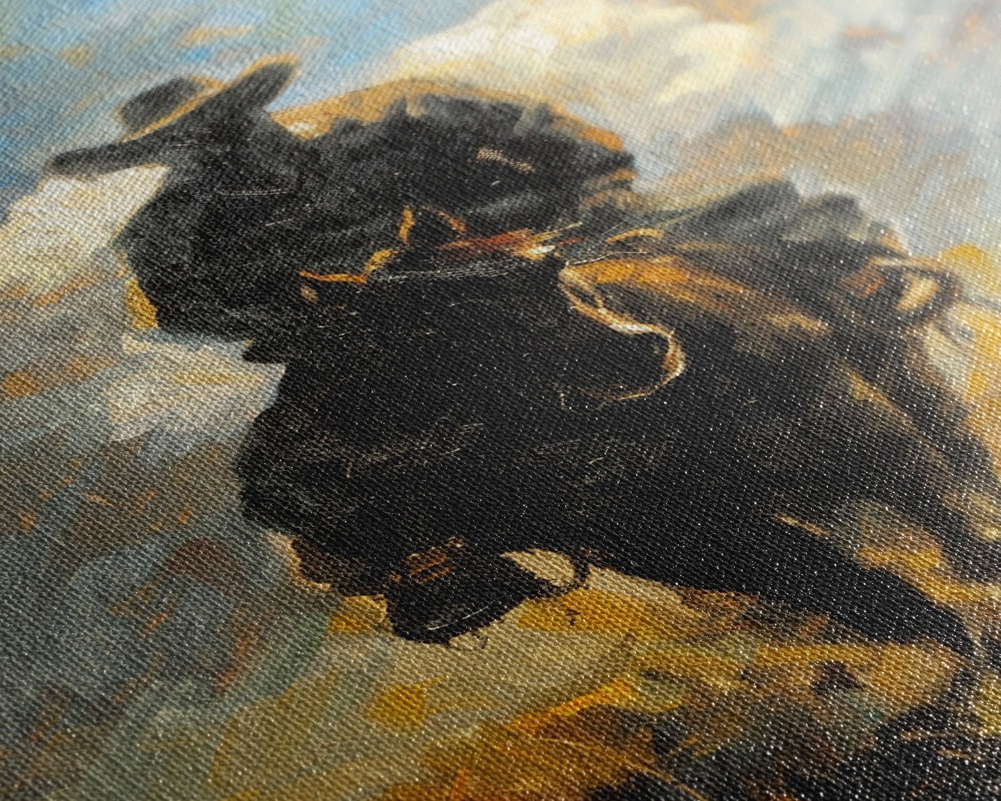 Silhouette of Cowboy on Horseback at Dusk - Framed Canvas Print, Western Art, Rustic Decor, Living Room Wall Art, Cowboy Themed Art