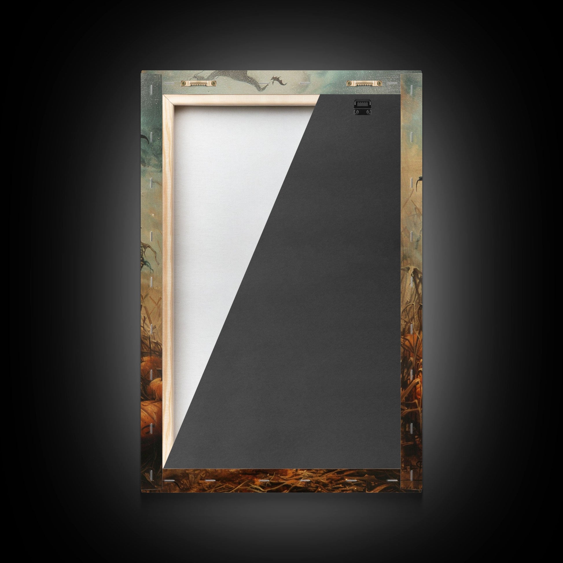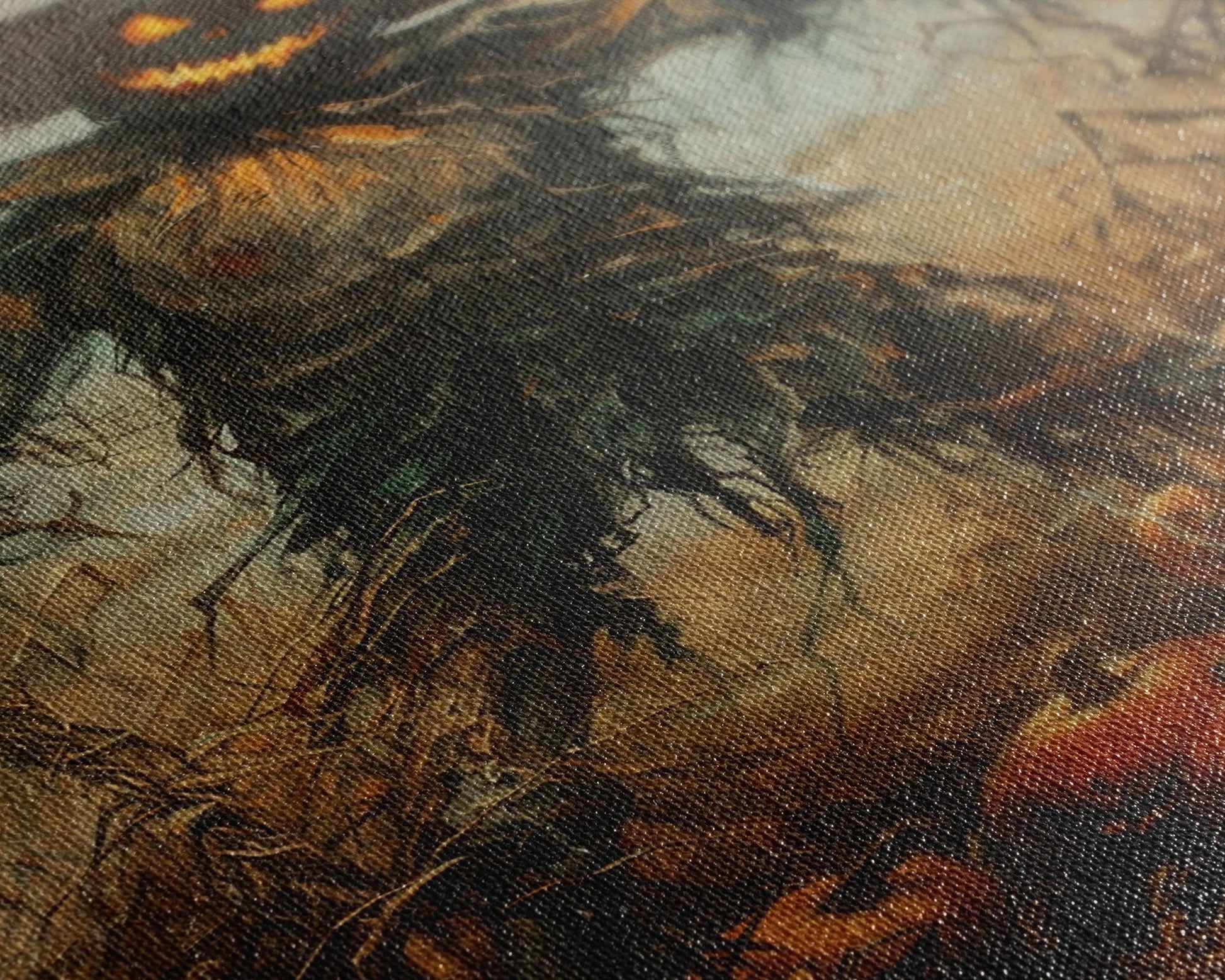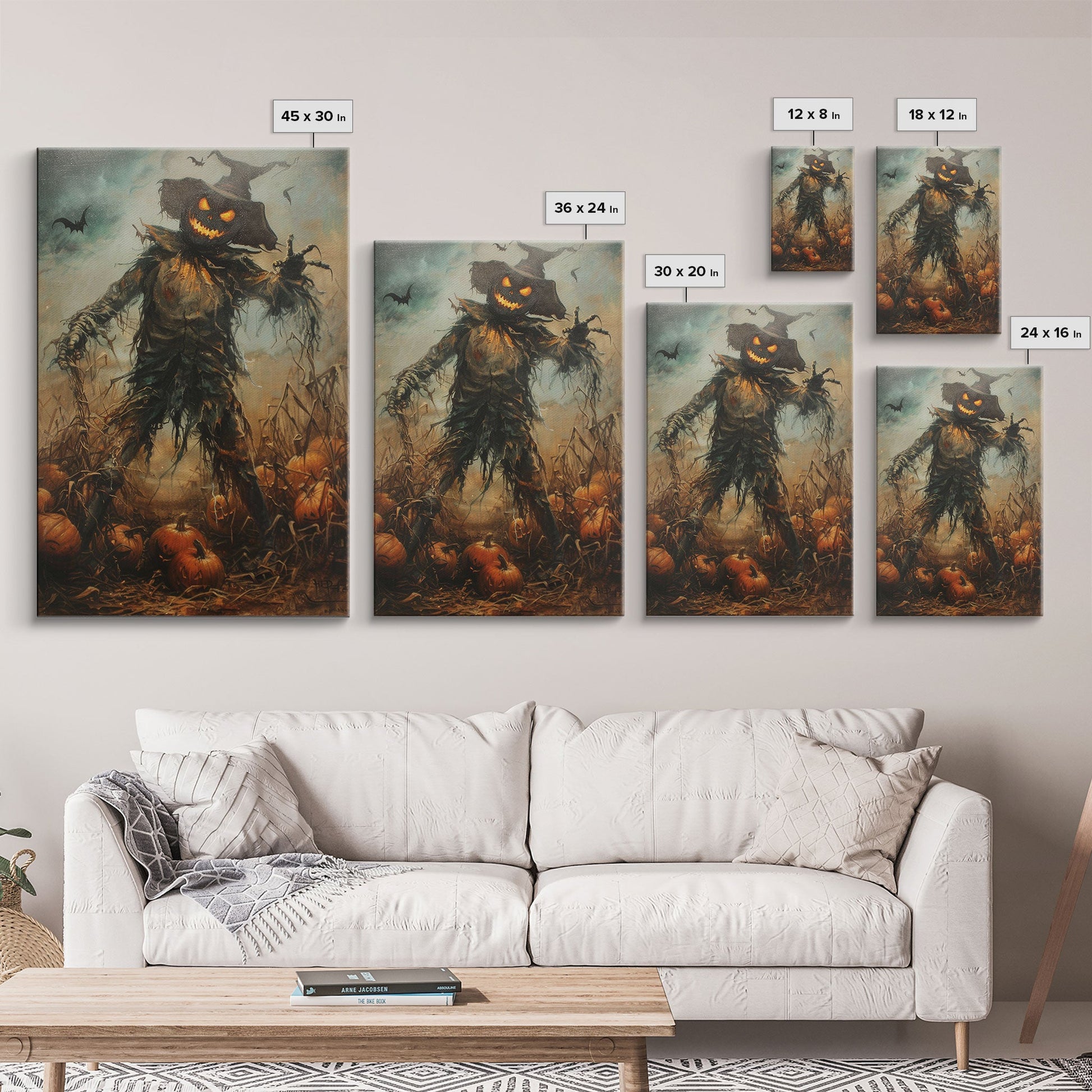 Sinister Scarecrow in Pumpkin Patch | Halloween Wall Art | Spooky Home Decor | Creepy Pumpkin Scarecrow Painting | Framed Canvas Print