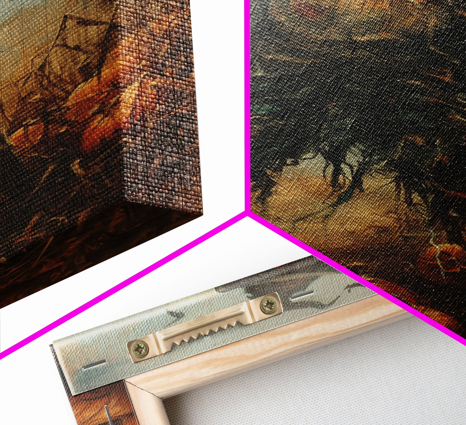 *SHIPPING: Every canvas is carefully wrapped in bubble wrap and foam corner protectors, and shipped fully assembled and ready to hang with sawtooth hangers in a flat box. All you need is a hammer!
