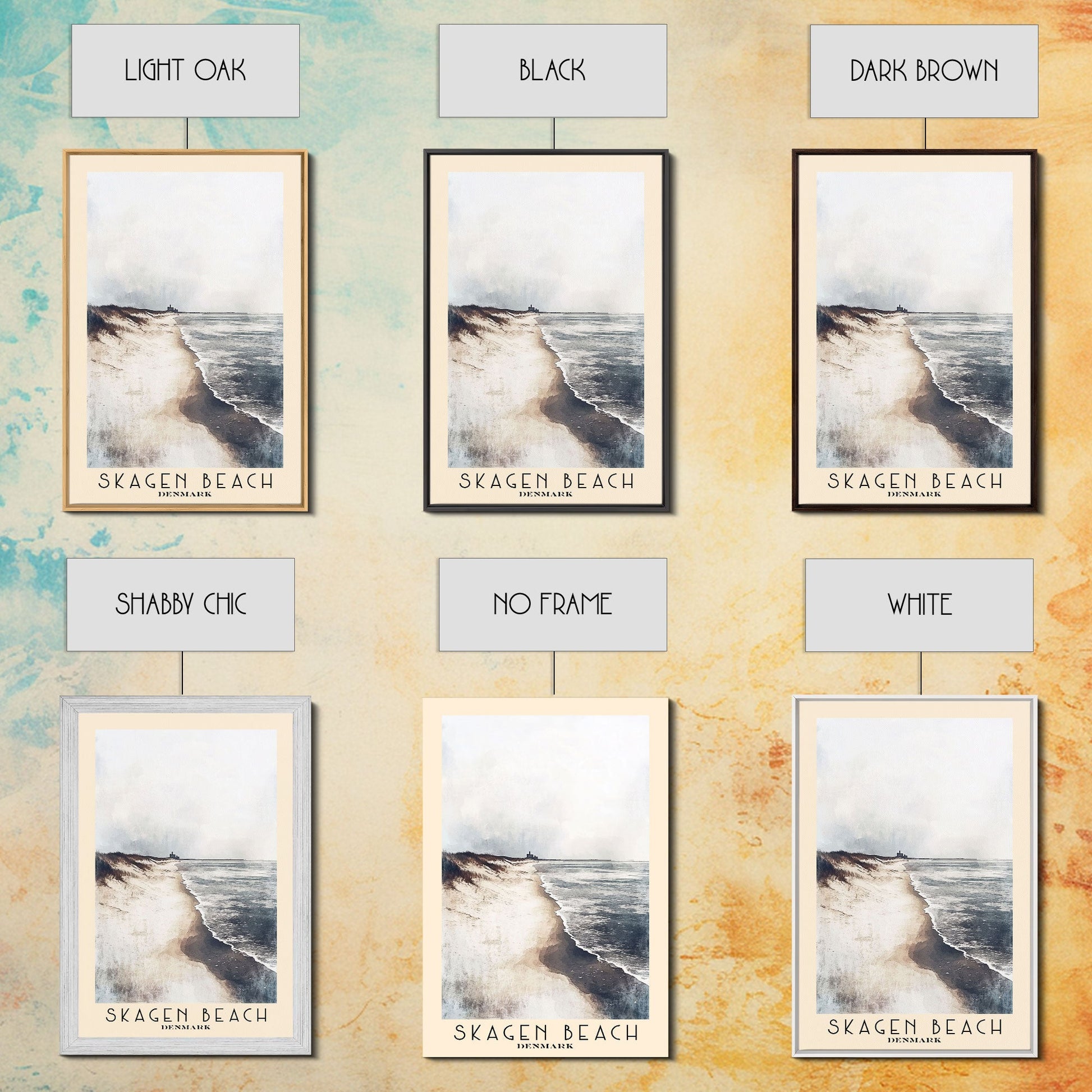 Skagen Beach, Denmark Watercolor Beach Print, Vacation Gift, Denmark Wall Art, Framed Canvas Print, Framed Beach Painting