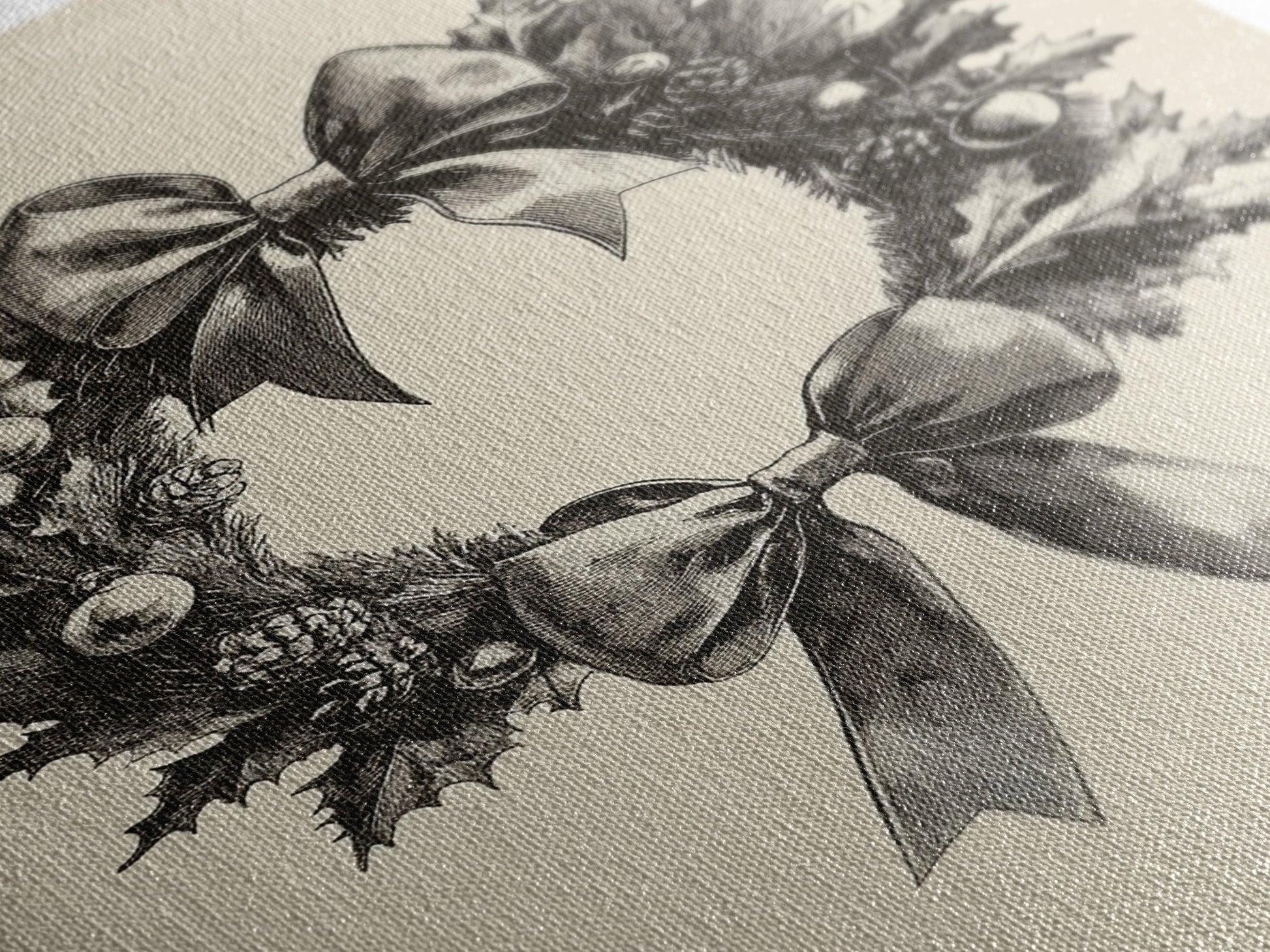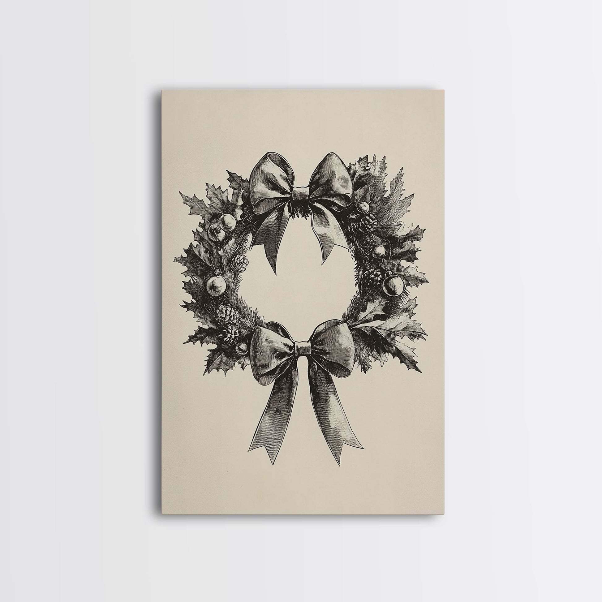 Sketch of a Christmas Wreath Canvas Print - Framed Canvas - Minimalist Christmas Art - Boho Christmas Art - Rustic Christmas Art