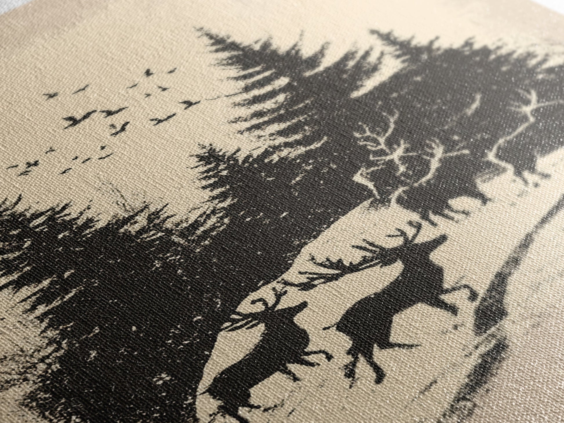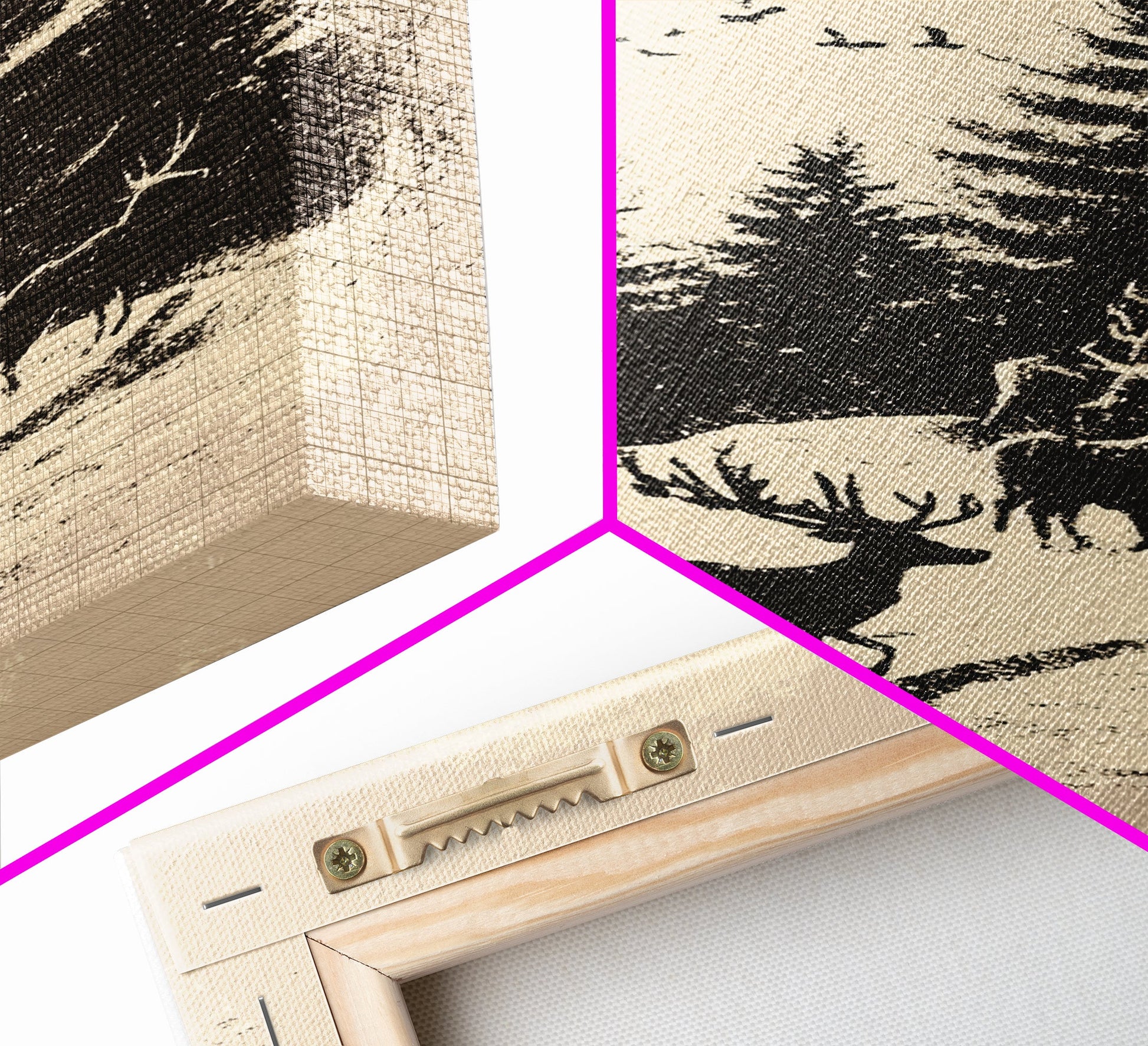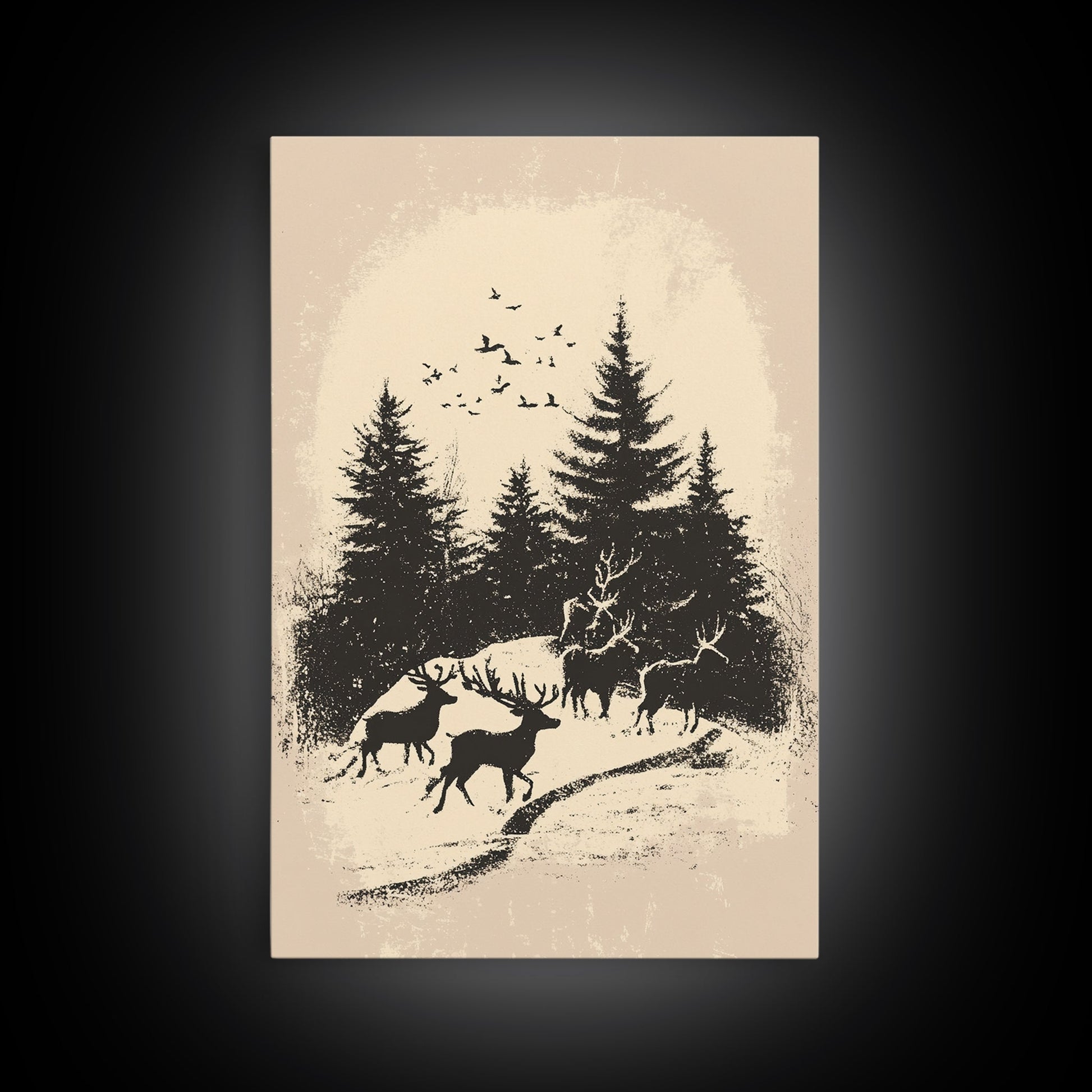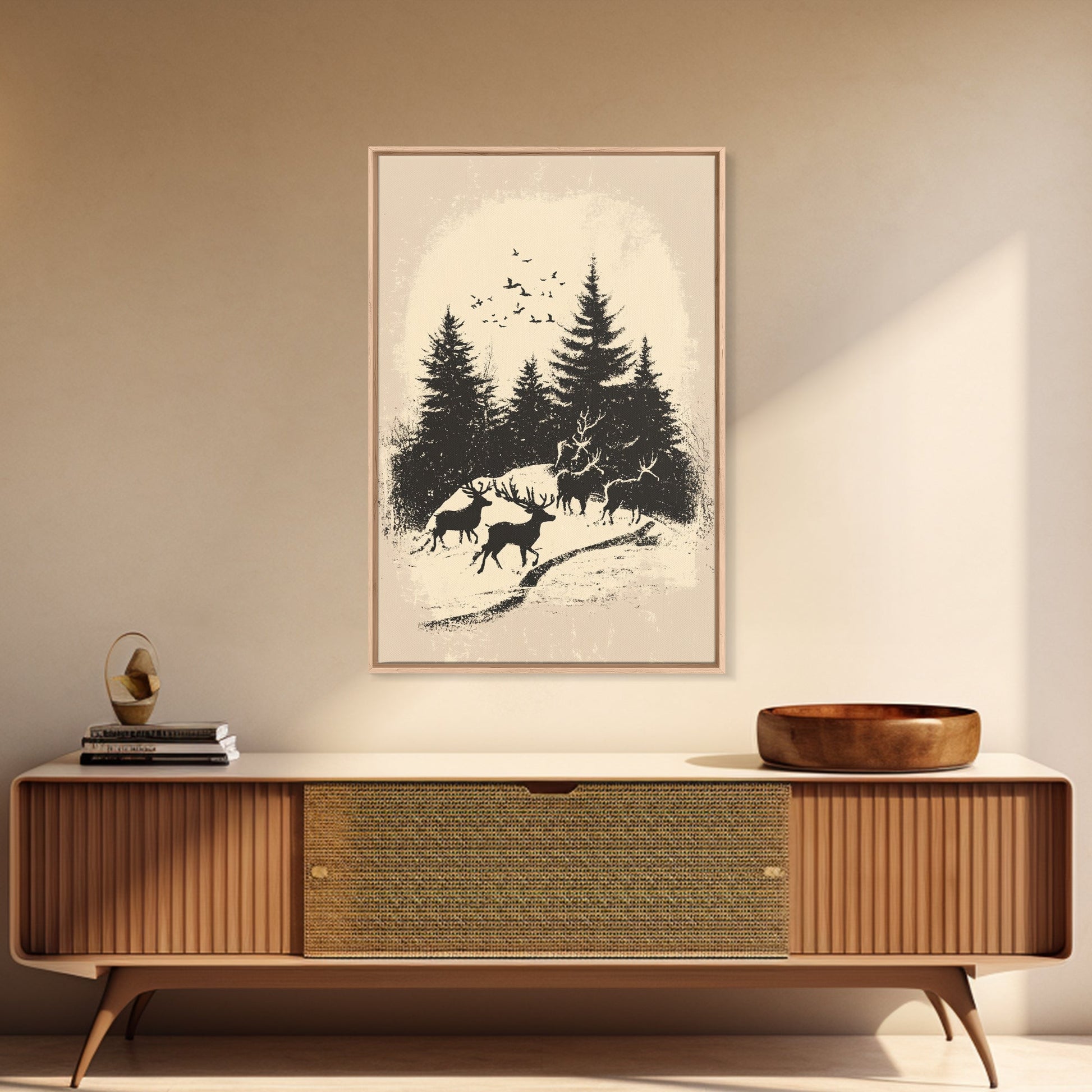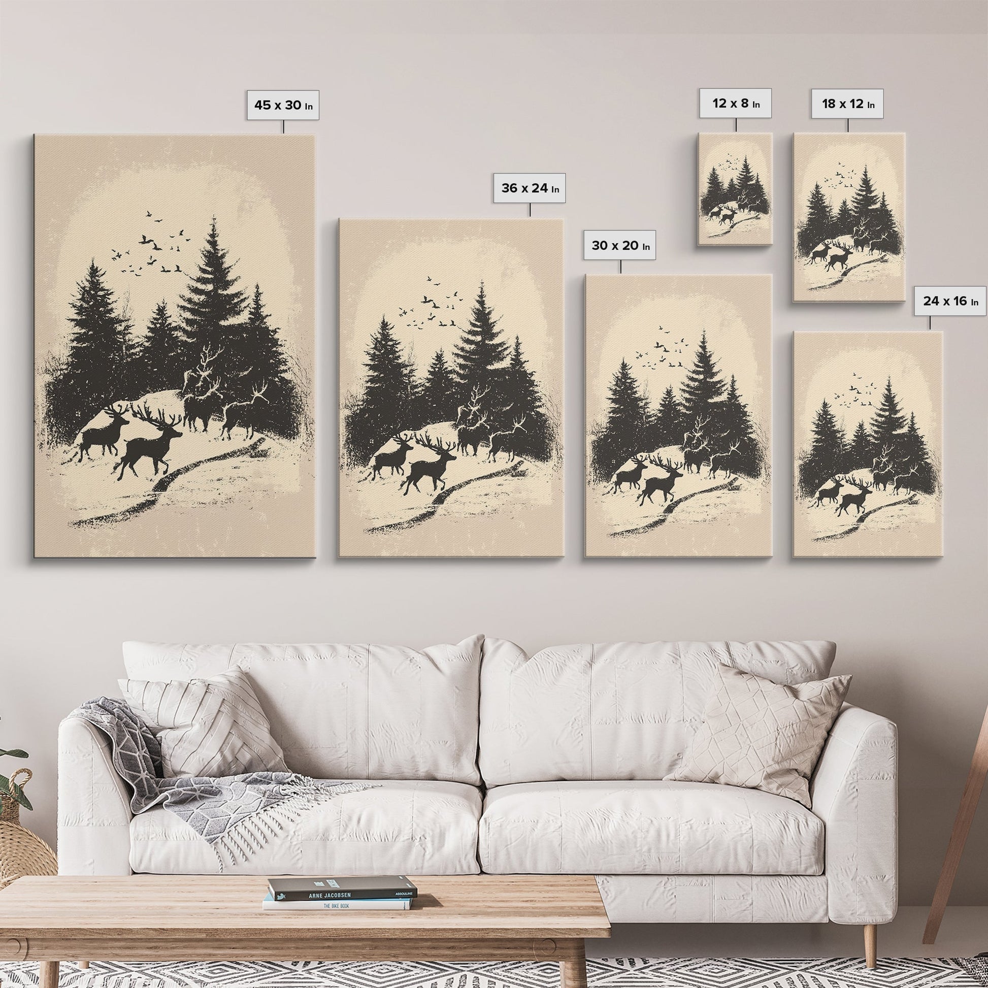 Sketch of Reindeer In The Snow Canvas Print - Framed Canvas - Minimalist Christmas Art - Boho Christmas Art - Rustic Christmas Art