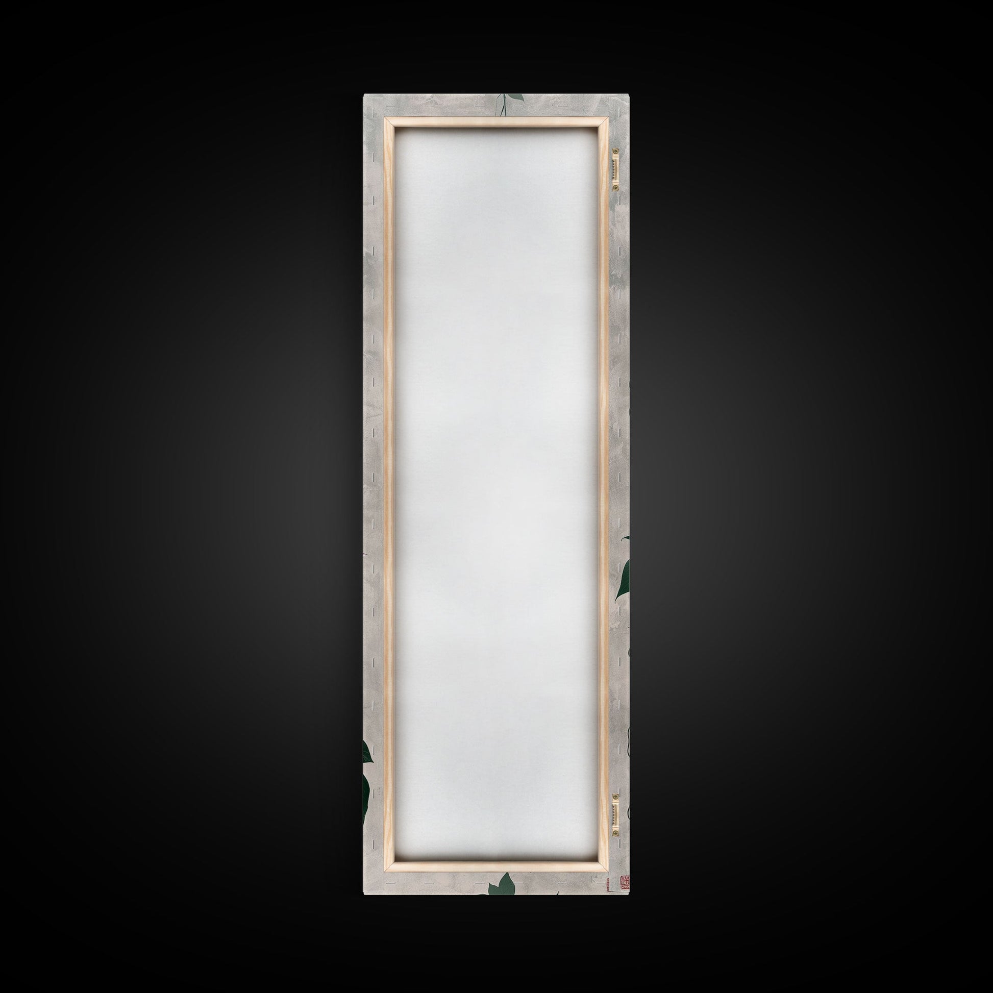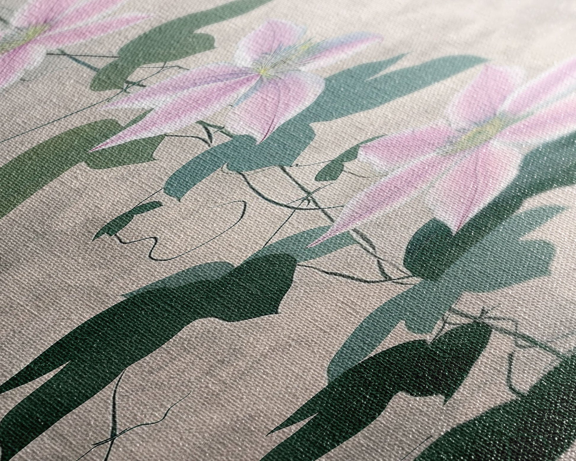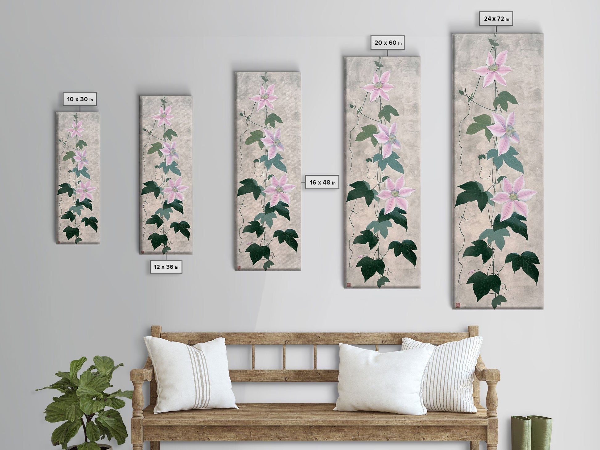 Skinny Art Clematis Vine In Japanese Style Wood Block Print Soft Pink Flowers On Framed Canvas Print, Tall Art Ukiyo-e