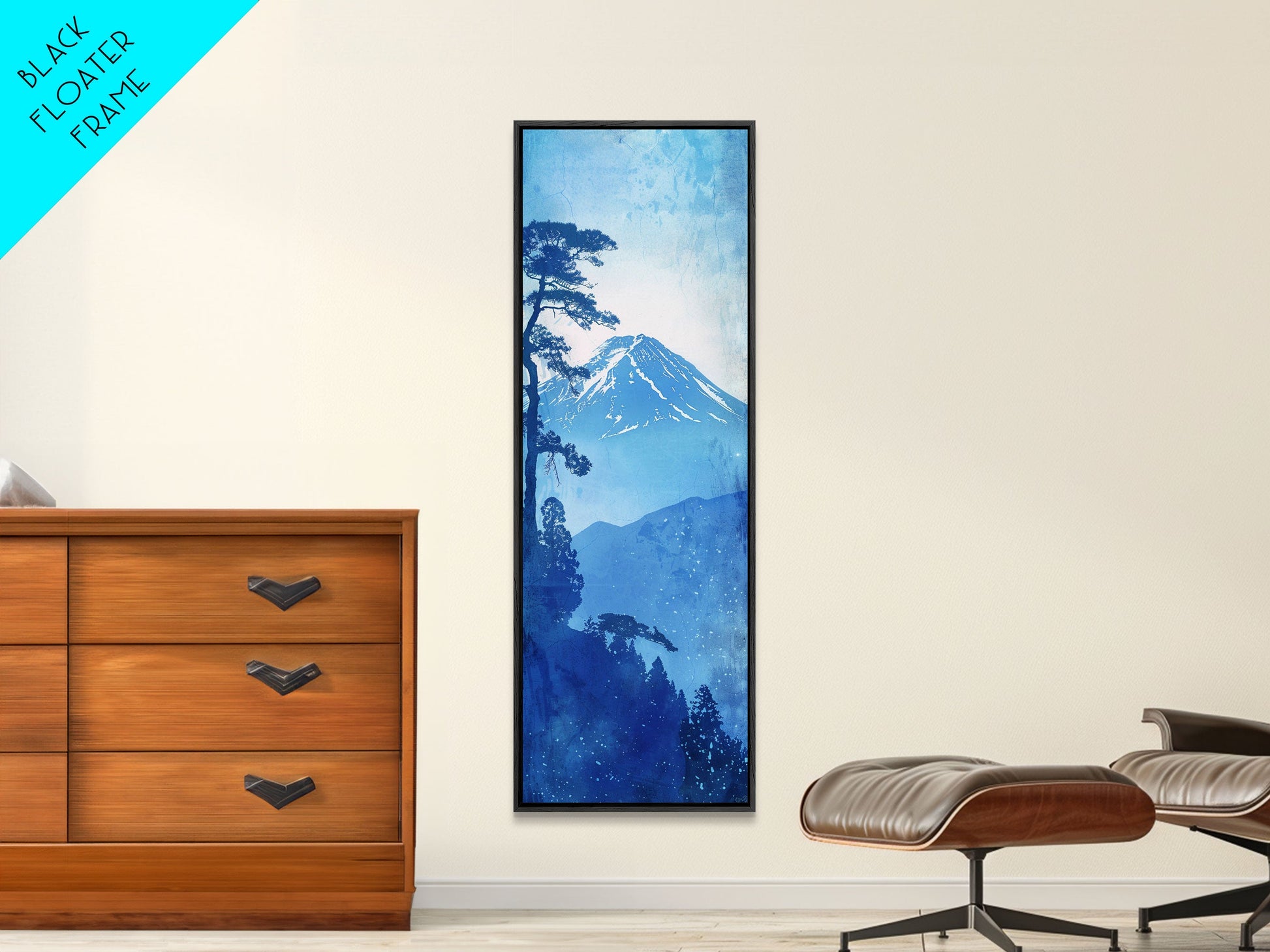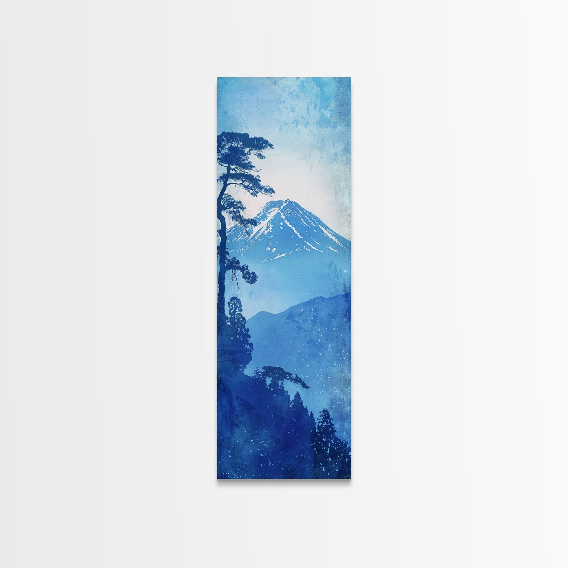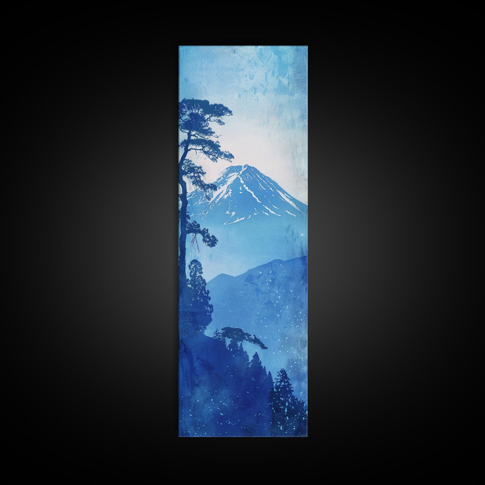 Skinny Art Tall Art Framed Canvas Print Japanese Style Art Blue Mount Fuji Forest Wood Block Print Ukiyo-e Feng Shui Wall Art
